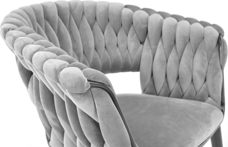 A gondos tűzés fonott hatással elegáns 3D struktúrát hoz létre. A fotel így kiemelkedik az étkezőasztal mellett és szoliterként is a nappaliban.