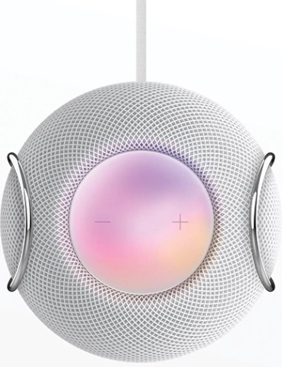 A HomePod minihez szabott formázás kényelmes hozzáférést biztosít az érintéses vezérlőkhöz és a kábelekhez.