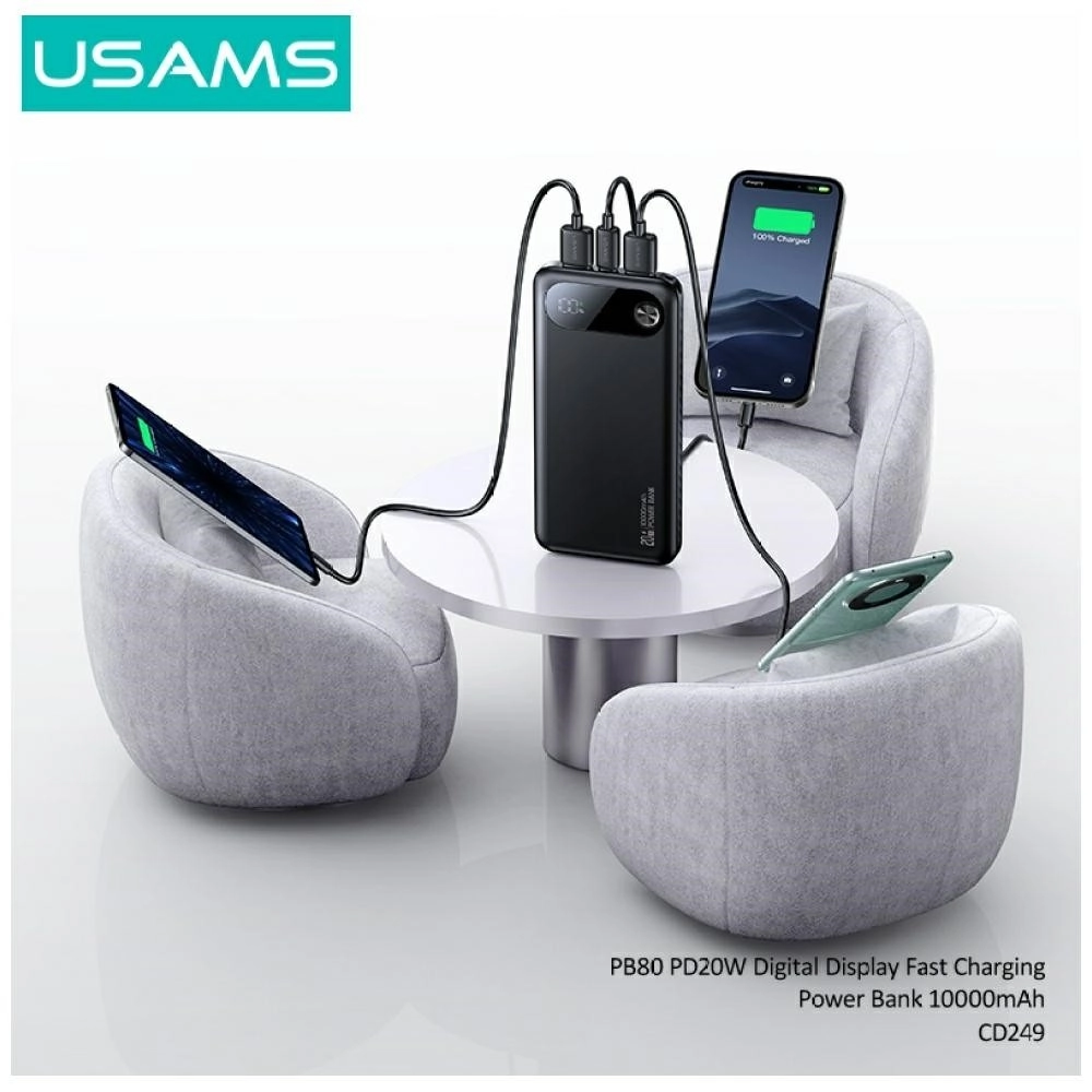 Olyan könnyű és erős powerbankot keresel, amely egész nap működésben tartja az eszközeidet? Az USAMS PB80 10 000 mAh kapacitást és 20 W Power Delivery támogatást kínál a villámgyors töltéshez kompatibilis telefonokhoz és kiegészítőkhöz. A USB‑C és 2× USB‑A portoknak köszönhetően egyszerre több eszközt is tölthetsz – okostelefont, fülhallgatót vagy akár okosórát.