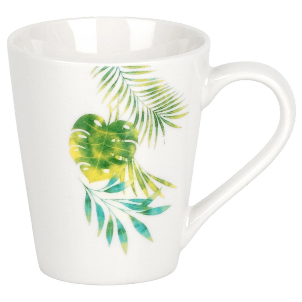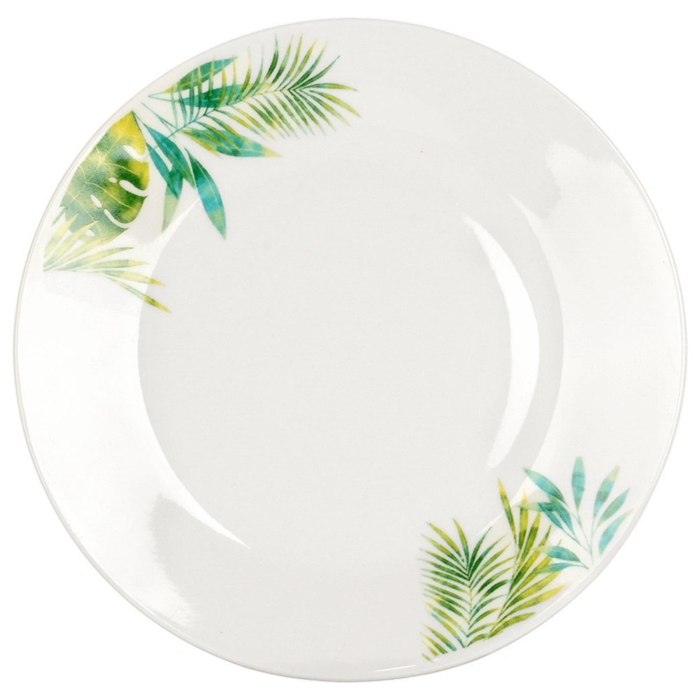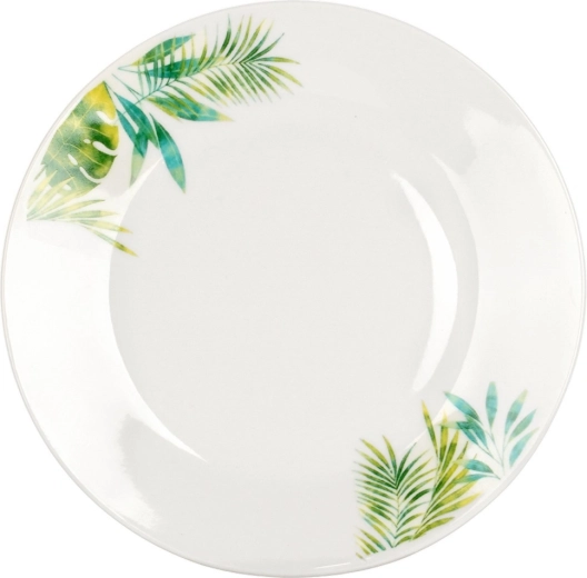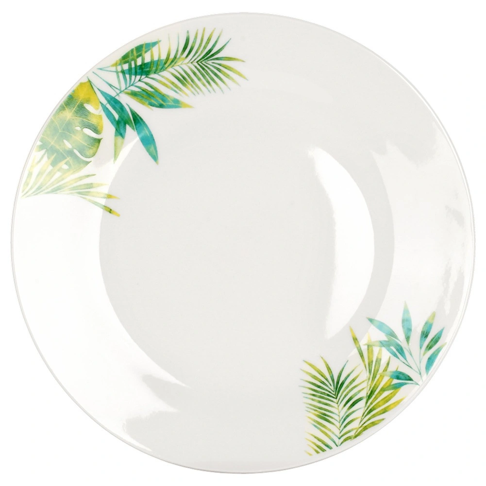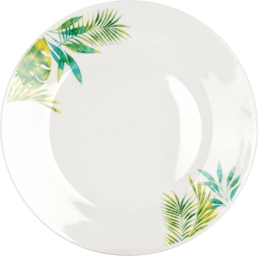 Ez a 16 részes porcelán készlet 4 személyre ötvözi a minőségi kivitelezést, a praktikus méreteket és a modern, botanikus megjelenést. A trópusi levelekkel díszített fehér alap friss akcentust ad az asztalnak, míg a tartós máz megkönnyíti a karbantartást és hosszú élettartamot biztosít.