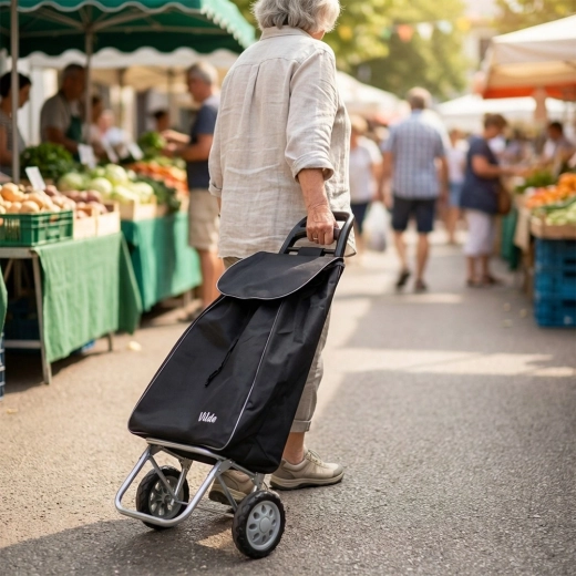 A nagy kerekek és az ergonomikus fogantyú megkönnyítik a haladást járdán és piacon egyaránt. Kíméli a hátat és a kezeket a mindennapi bevásárlások során.
