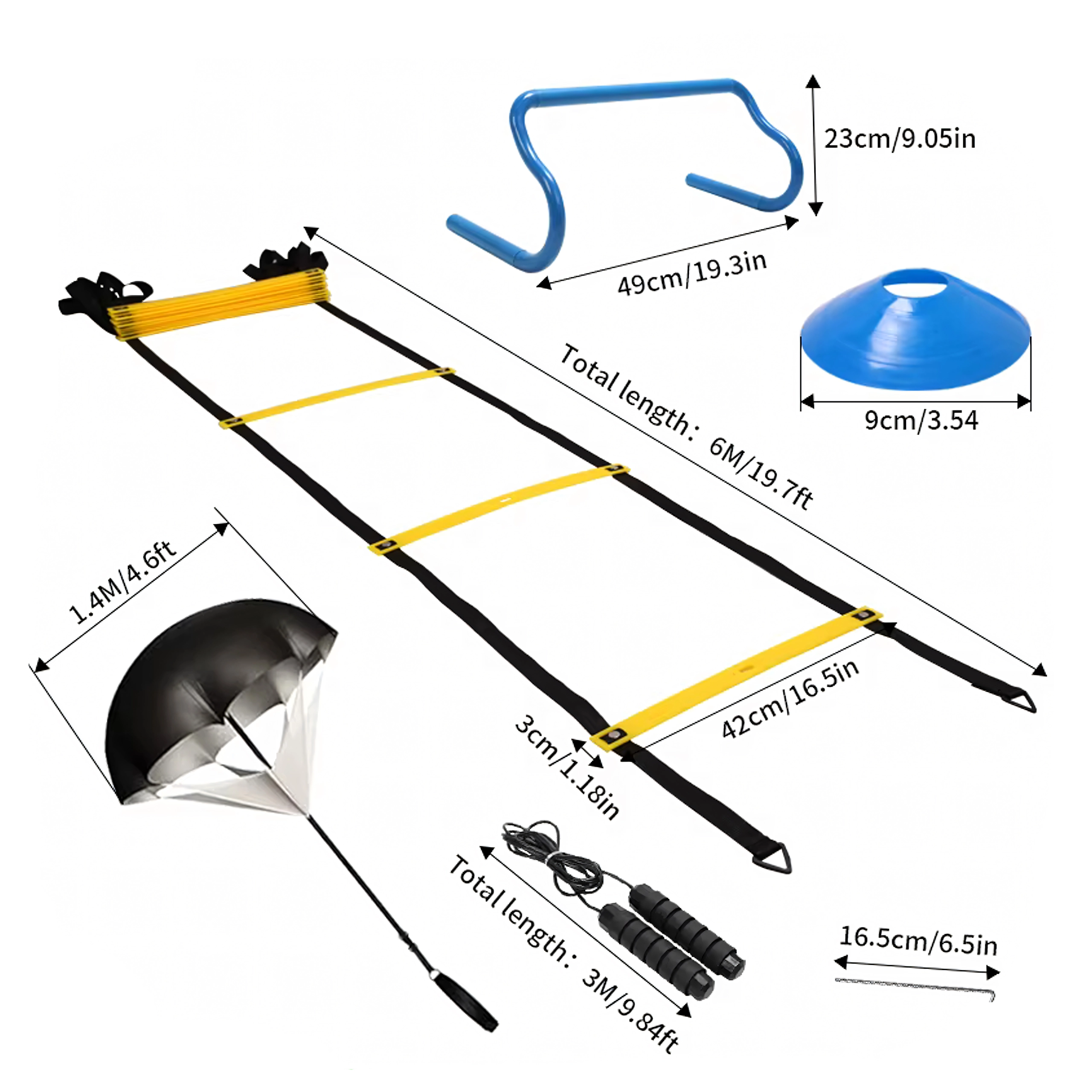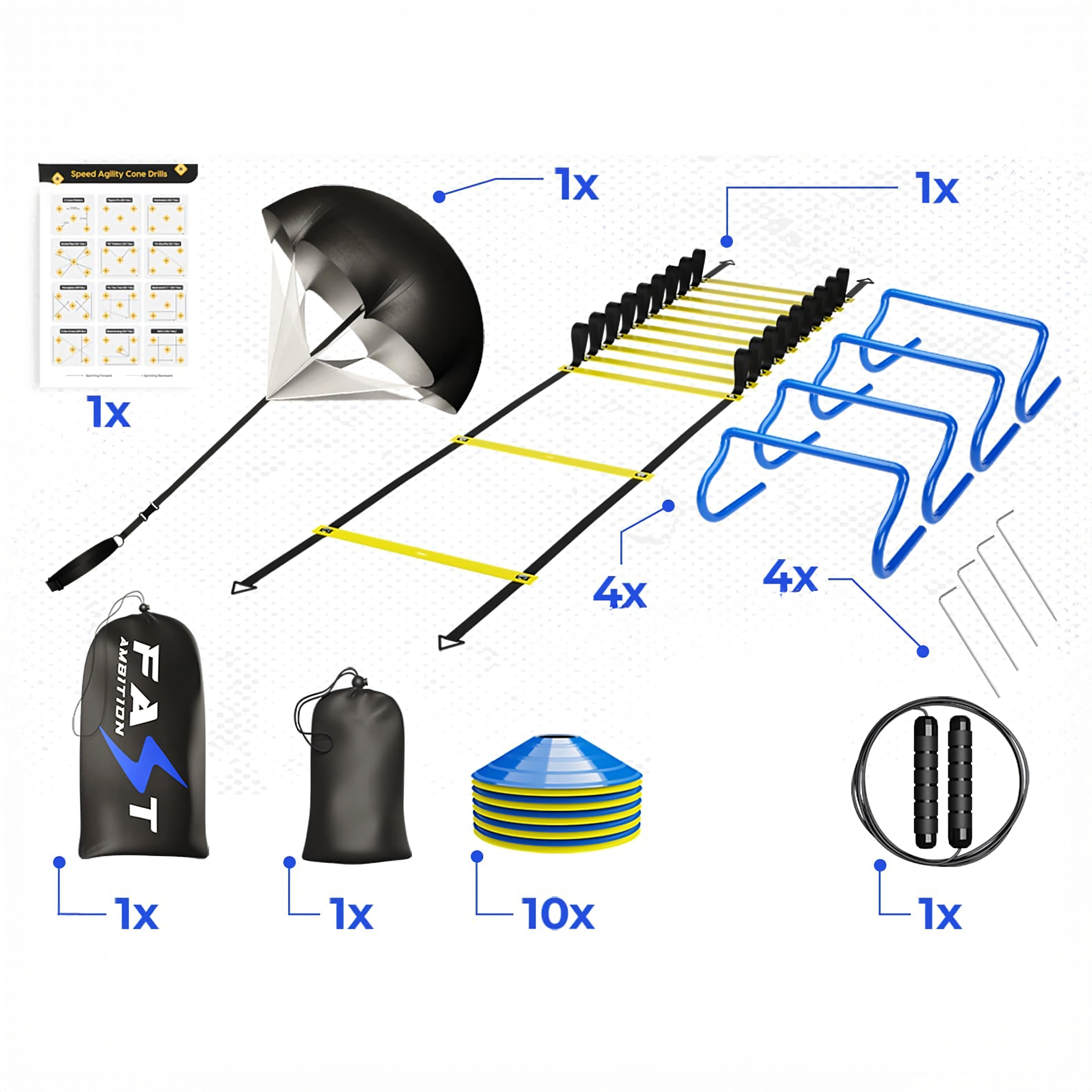 - Komplett felszerelés agilitáshoz, gyorsasághoz és lábmunkához