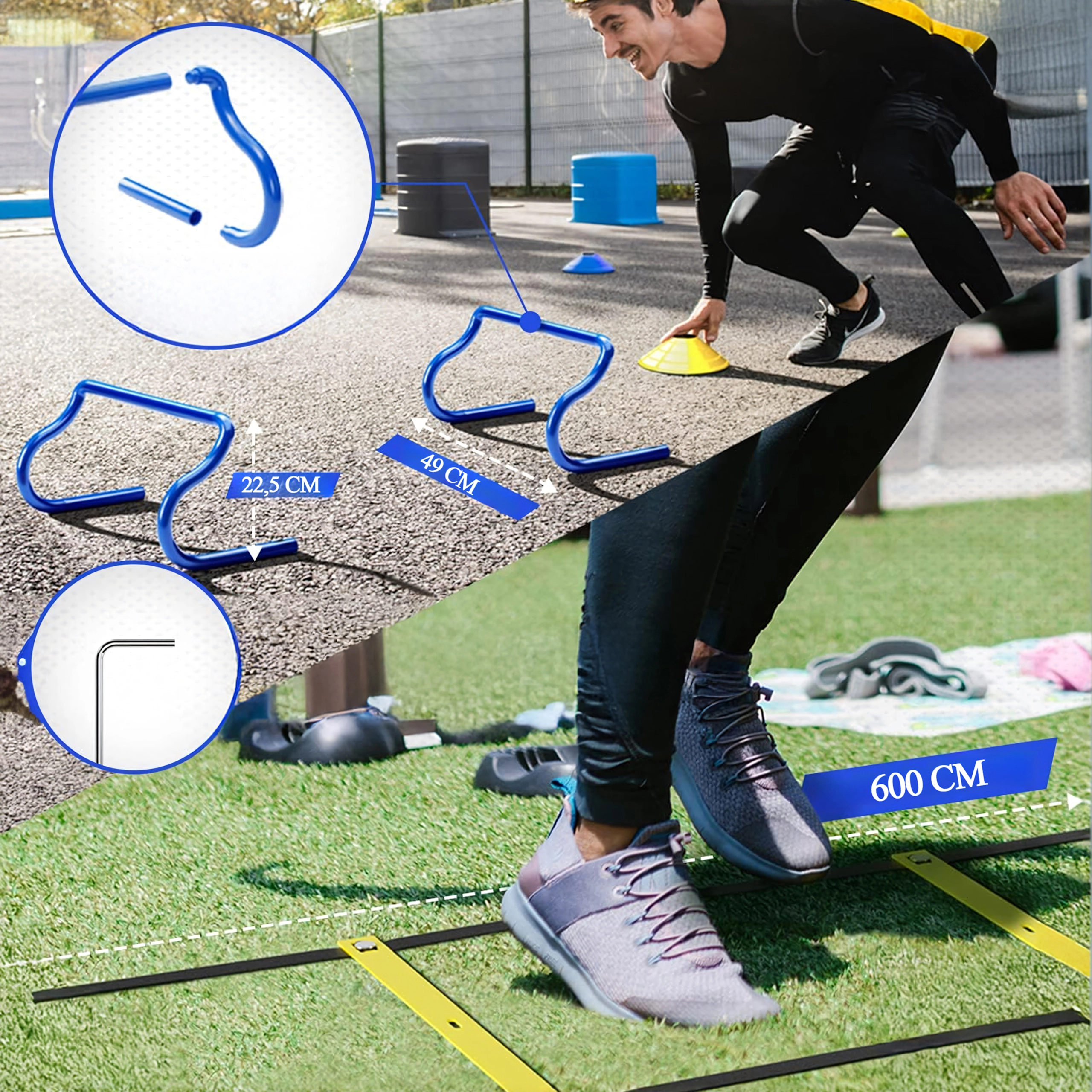 Alacsony profilú akadályok és feltűnő bóják fejlesztik a koordinációt, az elrugaszkodást és az irányváltásokat. Remek választás technikai edzésekhez futballban, atlétikában és csapatsportokban.