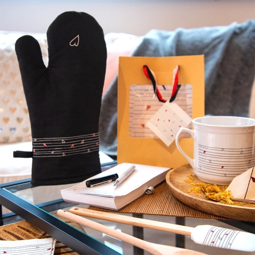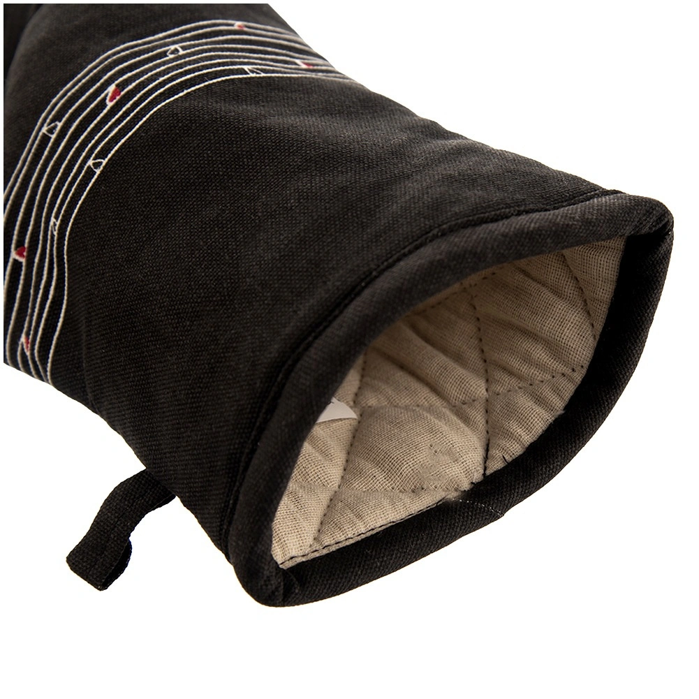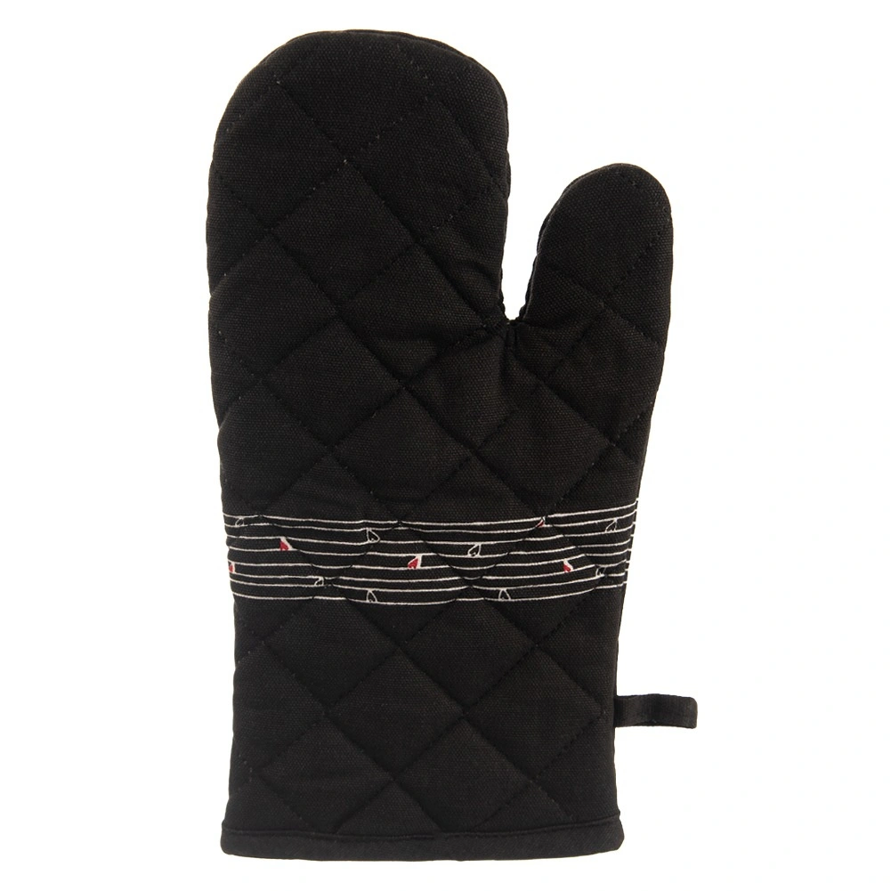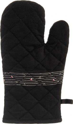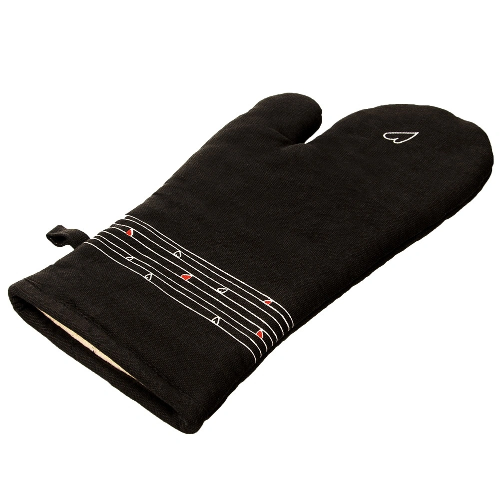 Ez a strapabíró pamut kesztyű nélkülözhetetlen segítőtárs főzéshez és sütéshez. Minőségi steppelésének és puha bélésének köszönhetően megbízható hővédelmet nyújt, és kényelmesen illeszkedik a kézre. Az elegáns fekete dizájn visszafogott szívmintával bármely konyhába illik.