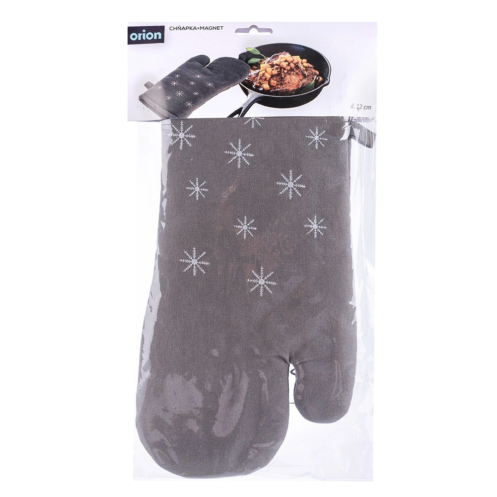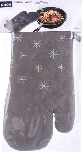 Praktikus, 100% pamutból készült konyhai edényfogó elegáns szürke színben, téli motívummal, amely főzés és sütés közben megbízható védelmet nyújt a hő ellen. Az univerzális, 17,5 × 32 cm méret jobb és bal kézre egyaránt illik, beépített mágnessel és akasztófüllel a könnyű felakasztáshoz és tároláshoz. 30 °C-on mosható. Az ORION márka bevált minősége.