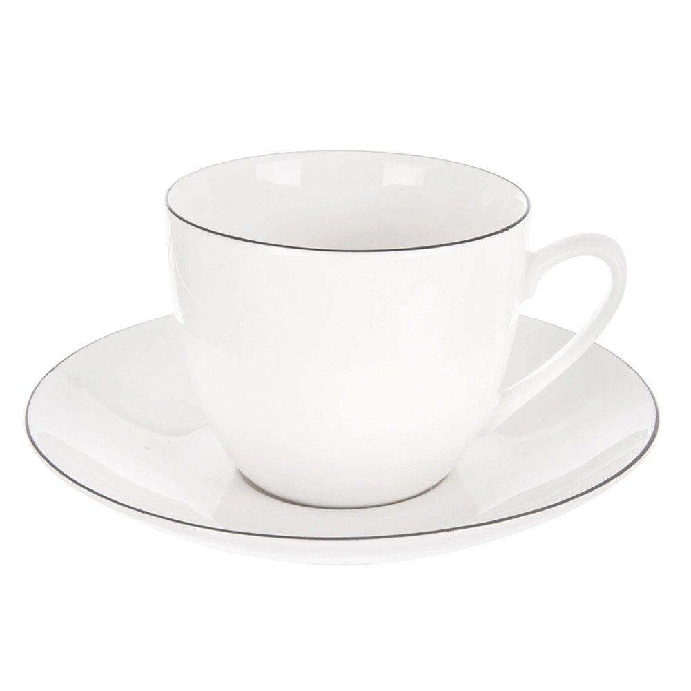 A 15 cm-es átmérő és a sekély középső bemélyedés biztosítja a csésze stabil elhelyezését. A vékony sötét perem kiemeli a modern és időtálló stílust.