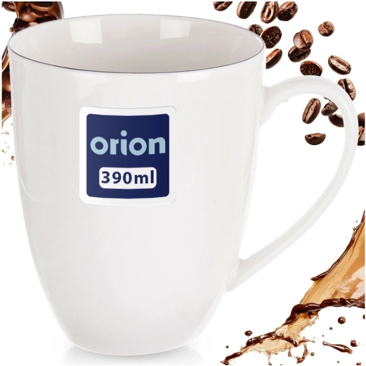Az elegáns, fehér porcelán DECORA bögre 390 ml űrtartalommal ideális kávéhoz, teához és kakaóhoz. Klasszikus kialakítású vékony fekete szegéllyel, kényelmes füllel, és mosogatógépben és mikrohullámú sütőben is használható – tökéletes a mindennapi használatra otthon és az irodában.