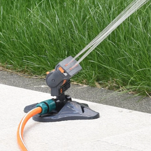 A masszív és stabil alap nagyobb nyomásnál is a helyén tartja a locsolót. A szabványos tömlőcsatlakozó szerszám nélküli, gyors rákötést biztosít. Egyszerű kezelése révén ideális a rendszeres, egyenletes és kíméletes öntözéshez kisebb és nagyobb felületeken egyaránt.