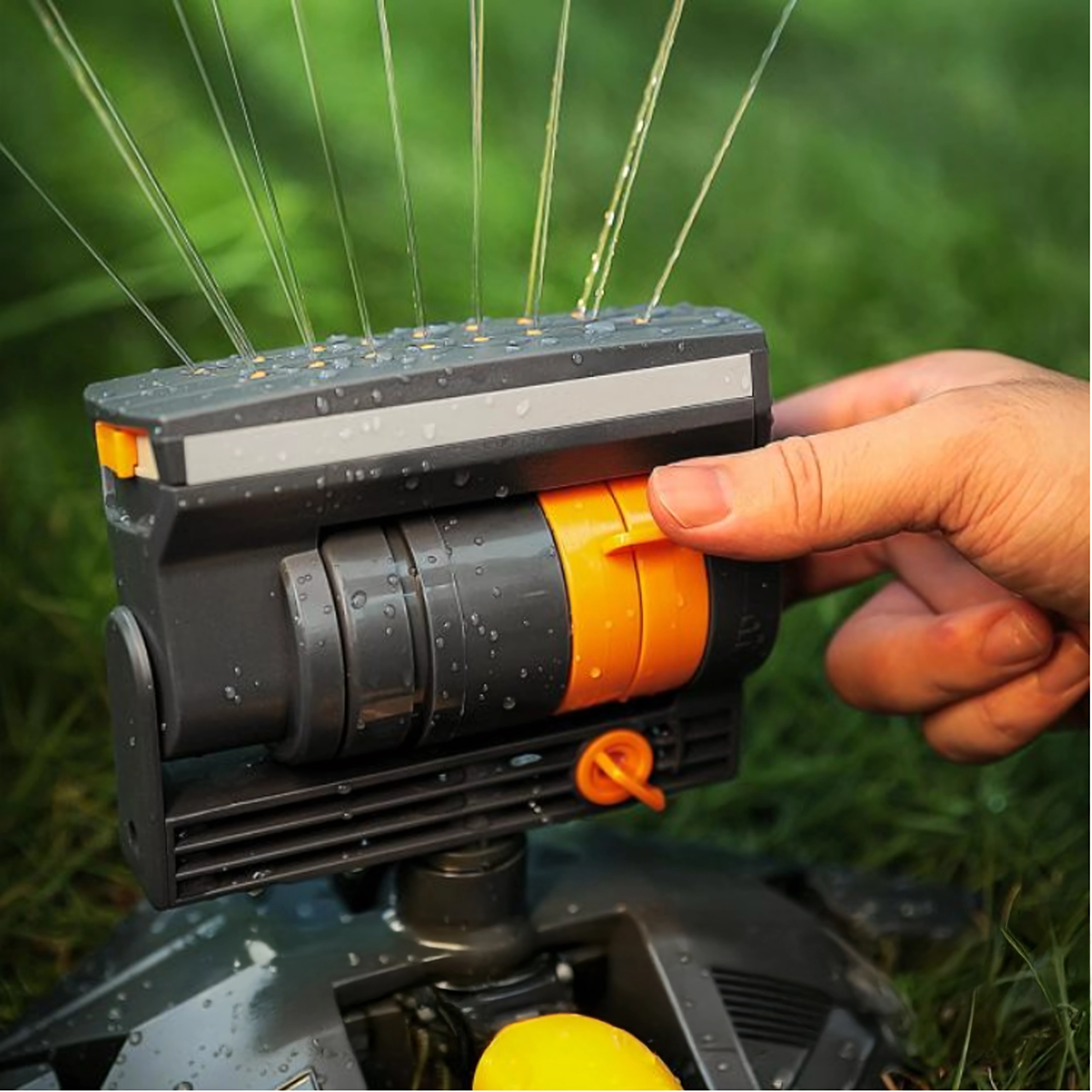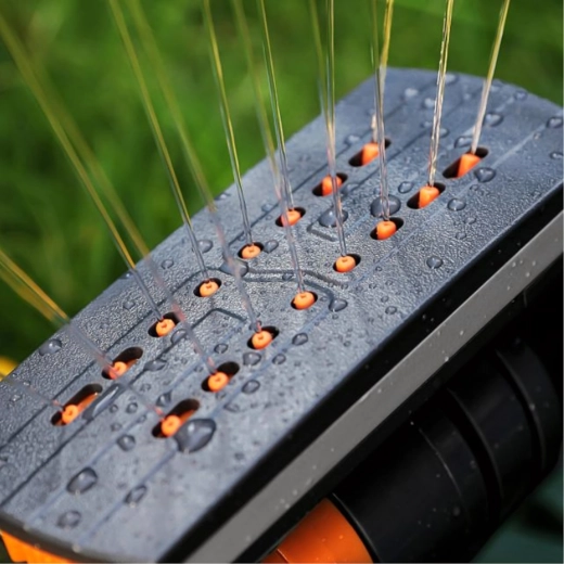 Öntözze kertjét hatékonyan az oszcilláló locsolóval, amely 16 precíz fúvóka segítségével egyenletesen porlasztja a vizet. Az állítható fej lehetővé teszi a szórás irányának, szögének és szélességének beállítását, így könnyen a gyep, a zöldségágyások vagy a virágfelületek aktuális igényeihez igazíthatja a lefedettséget.