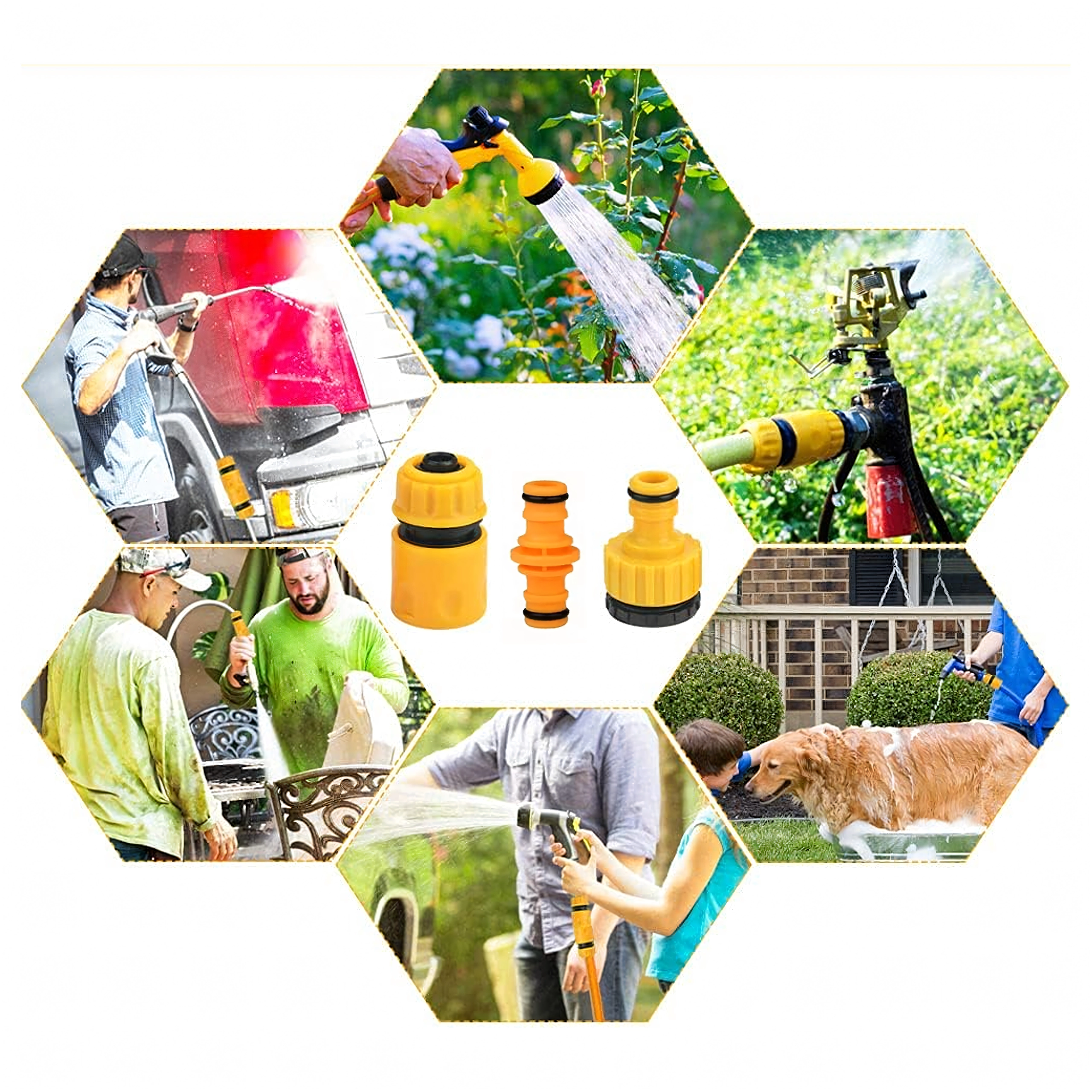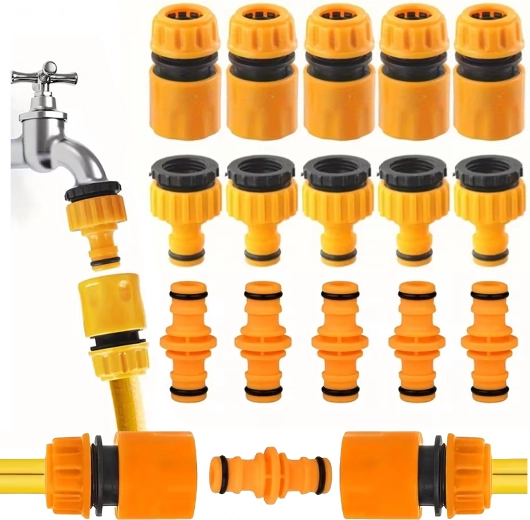 Ez a praktikus gyorscsatlakozó- és adapterkészlet lehetővé teszi, hogy a kerti tömlőt könnyedén csatlakoztassa a külső csaphoz, két tömlőt összekapcsoljon, vagy pillanatok alatt fejeket, szórókat cseréljen. A 1/2" és 3/4" szabványos méretekkel való kompatibilitás a legtöbb háztartási telepítést lefedi.