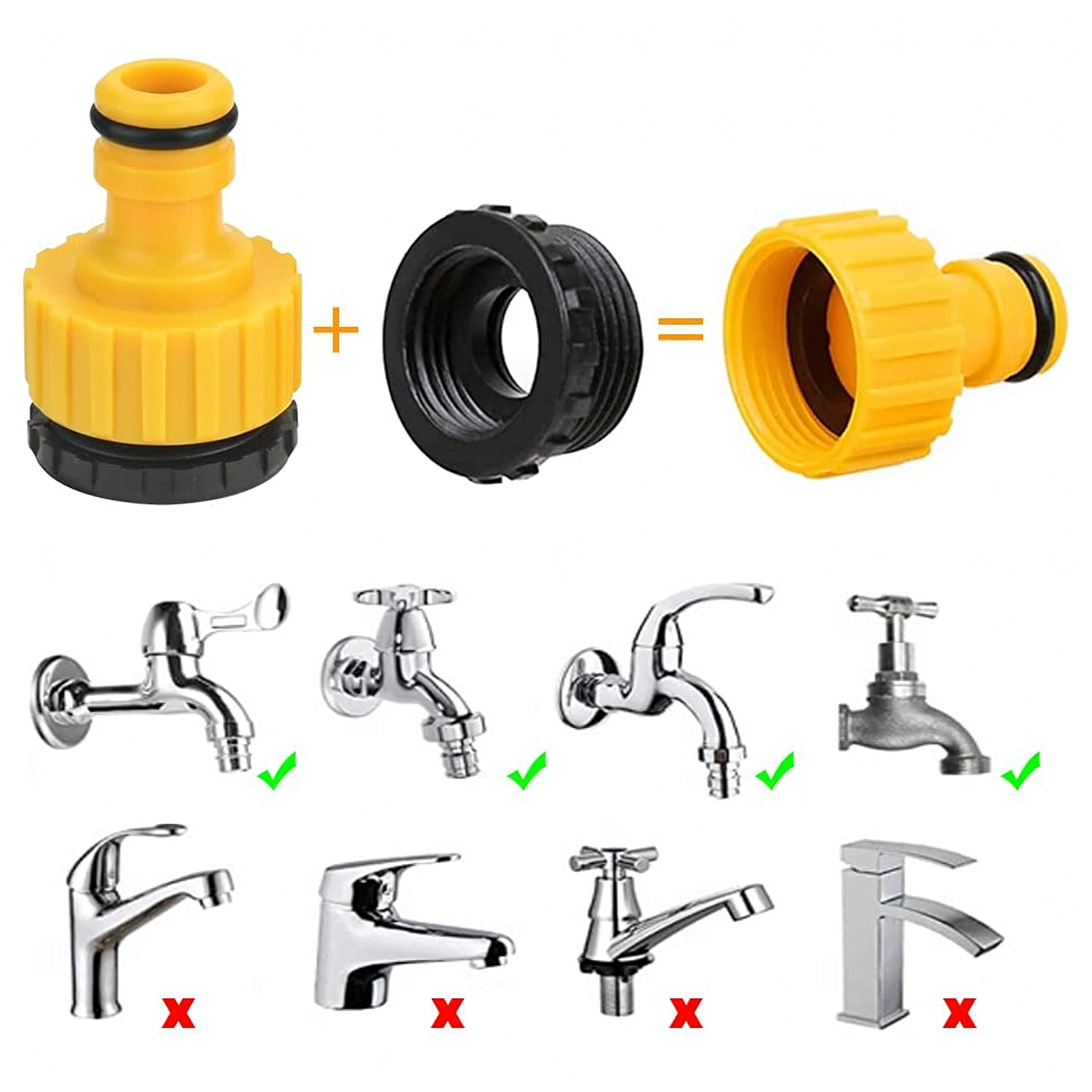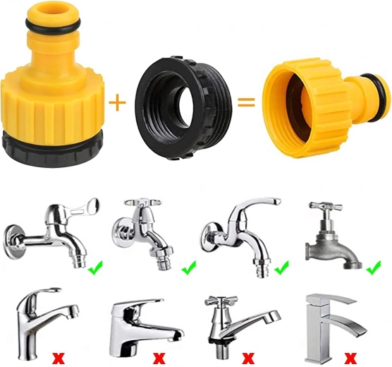 Az adapterek illeszkednek a szokásos kerti csapokhoz és tömlőkhöz, így a készlet könnyen beilleszthető a meglévő öntözőrendszerbe.