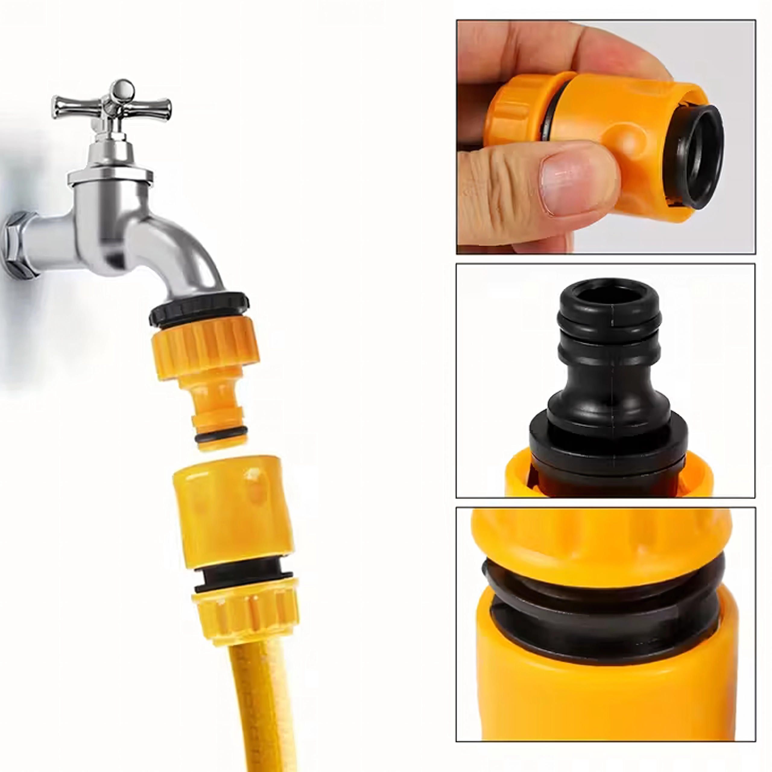 A bordázott fogófelületek megkönnyítik a meghúzást még nedves kézzel is, míg a gumírozott O-gyűrűk gondoskodnak a tömítettségről és a vízveszteség minimalizálásáról. A strapabíró műanyag kivitel könnyű, egyszerűen karbantartható, és ideális a mindennapi kerti öntözéshez, autómosáshoz és egyéb kültéri munkákhoz.