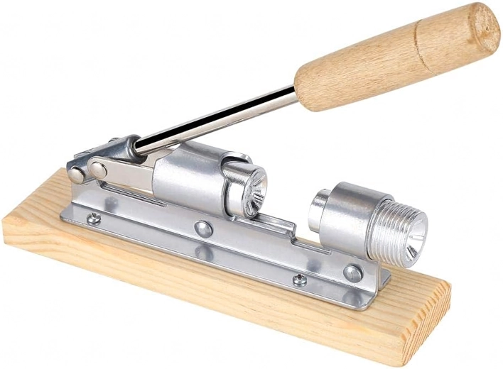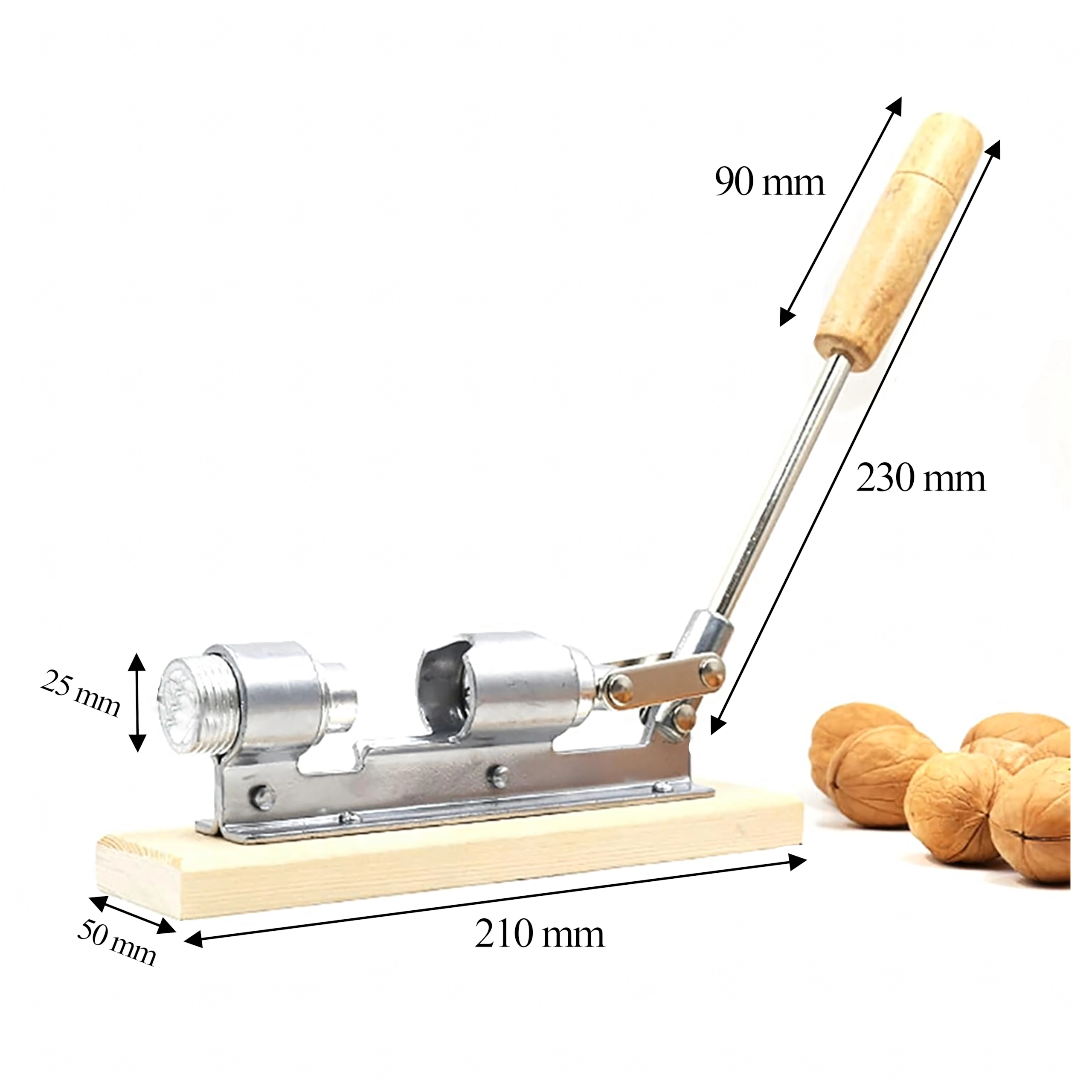Masszív, kézi diótörő acél mechanizmussal és stabil fa talppal a biztonságos és precíz töréshez. A hosszú karos kar fa markolattal nagy erőt és kényelmes kezelést biztosít. Alkalmas dióhoz, mogyoróhoz, mandulához, pisztáciához, makadámdióhoz és tenger gyümölcseihez is.