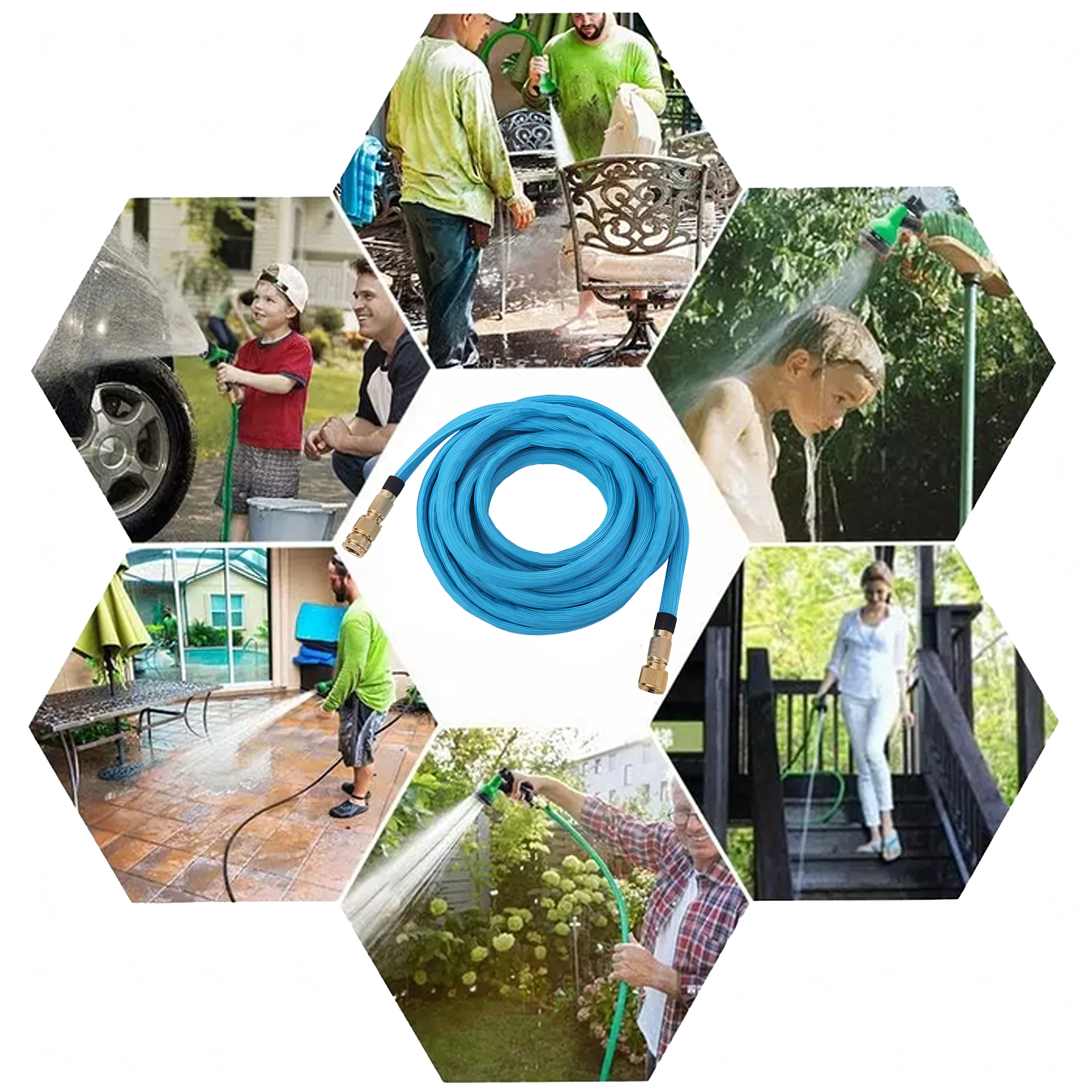 Sokoldalú felhasználás a kertben és a ház körül: ágyások és balkonládák öntözése, teraszok leöblítése, kerékpár- vagy autómosás. A strapabíró textilfonatnak köszönhetően kevésbé hajlamos a megtörésre és csavarodásra, és gyakori használat mellett is rugalmas marad.