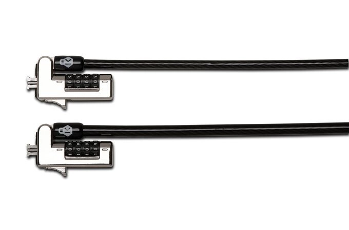 A karcsú zárfej lehetővé teszi, hogy a készülék laposan és stabilan feküdjön anélkül, hogy a fontos portokat blokkolná. A visszaállítható 4 jegyű kombináció akár 10 000 lehetőséget kínál, a forgó és billenthető fej pedig gyors és kényelmes csatlakoztatást biztosít akár egy kézzel is. A Register & Retrieve program megkönnyíti a kód biztonságos visszakeresését elvesztés esetén.