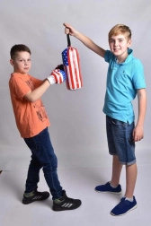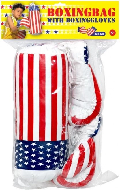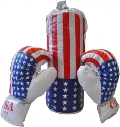 A kesztyűk pontosan illeszkednek a kisgyermekek kezére. A zsák és a kesztyűk amerikai zászlós mintákkal remek szórakozást nyújtanak minden kis harcosnak. A játék puha anyagból készült, így nem kell tartani a sérülés veszélyétől. Fejleszti a gyermek ügyességét és képzelőerejét, valamint támogatja az egészséges mozgást.