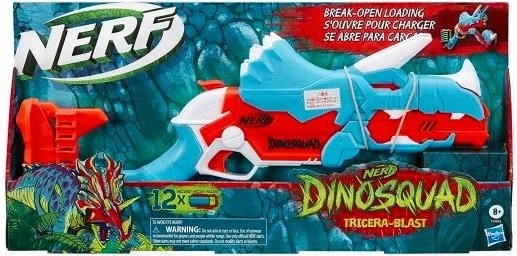 Lépj be az akció világába a blaster Nerf DinoSquad Tricera-Blast segítségével! Ez a blaster csodálatos, Triceratopsz ihlette dizájnnal rendelkezik, ami valósághű dinoszaurusz élményt nyújt. A könnyű töltést a break-open mechanizmus biztosítja, amely által csak a dinoszaurusz fején lévő elülső szarvat kell megnyomni, hogy feltáruljanak a belső nyílkamrák.