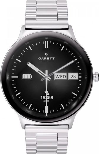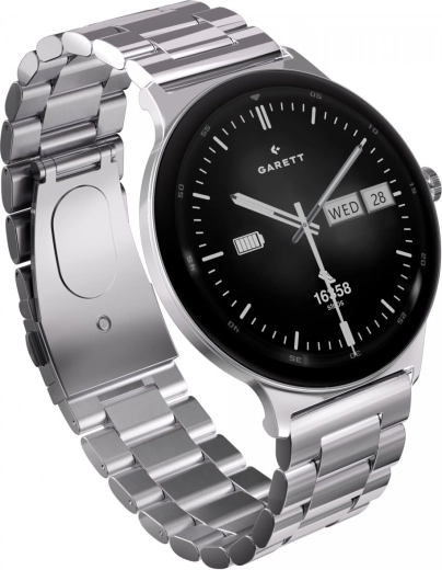 A GARETT Quantum stílusos és strapabíró okosóra a mindennapokra. A rendkívül vékony ház (kb. 7,5 mm) kényelmes viseletet biztosít, a 1,43"-os AMOLED panel kiváló kontrasztot és olvashatóságot kínál, az Always On Display pedig mindig szem előtt tartja az időt. A Gorilla Glass védi a kijelzőt a karcoktól, a forgatható korona pedig gyors kezelést biztosít.