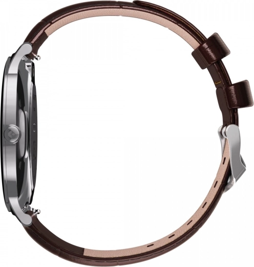 Ezüstszínű rozsdamentes acél karkötő az eleganciáért és barna bőr szíj a kényelemért. A csomag tartalmaz egy eszközt a karkötő egyszerű rövidítéséhez.