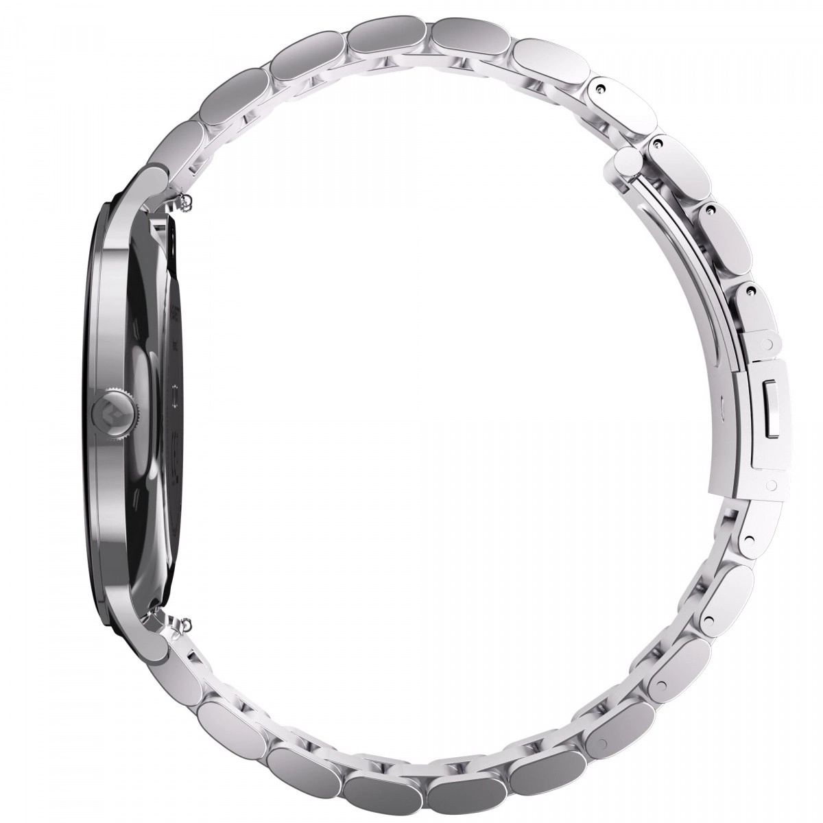 A csomagban kétféle szíjat kap: elegáns rozsdamentes acél karkötőt és kényelmes bőr szíjat. A mellékelt eszközzel könnyen beállíthatja a karkötő hosszát, így az óra mindig tökéletesen illeszkedik. Az akkumulátor akár egy hétig is bírja egyetlen töltéssel, a töltést pedig praktikus USB töltőbölcső biztosítja.
