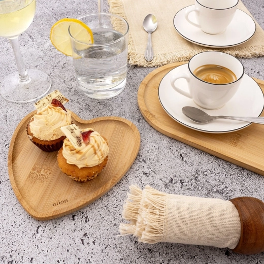 Elegáns, ovális tál természetes bambuszból desszertek, snackek és italok stílusos tálalásához. Könnyű, tartós és sokoldalú, természetes bambusz erezettel és praktikus peremmel a biztonságos hordozáshoz. Nedvességálló, könnyen tisztítható, és remekül mutat otthon és a vendéglátásban is.