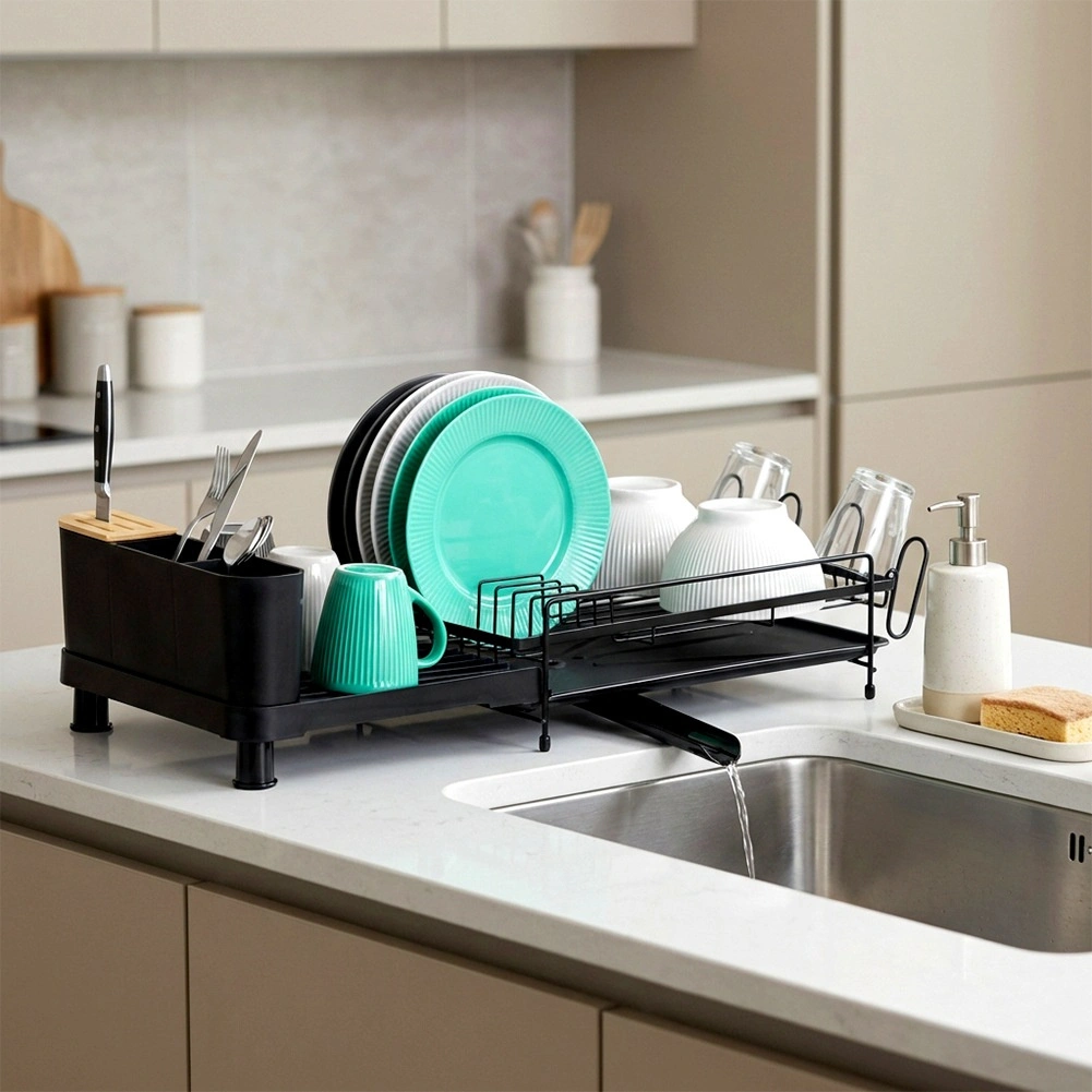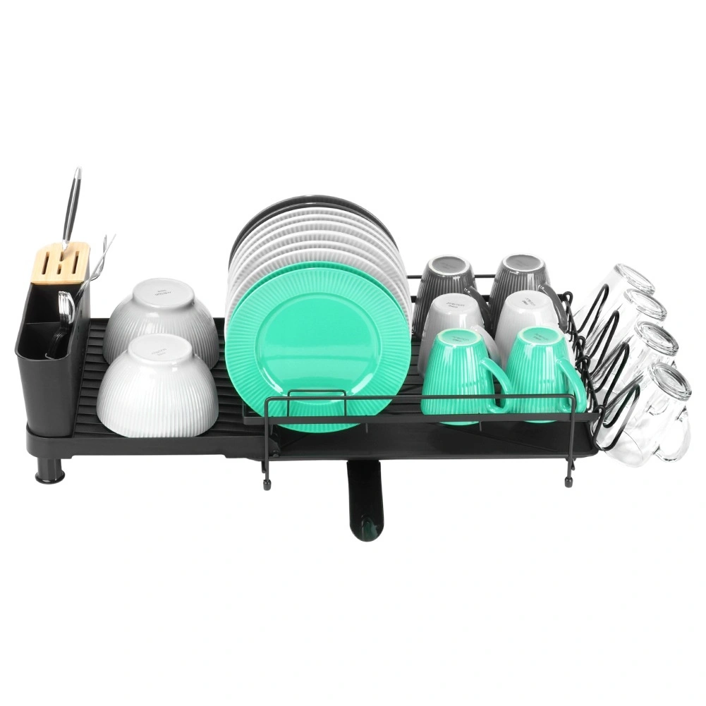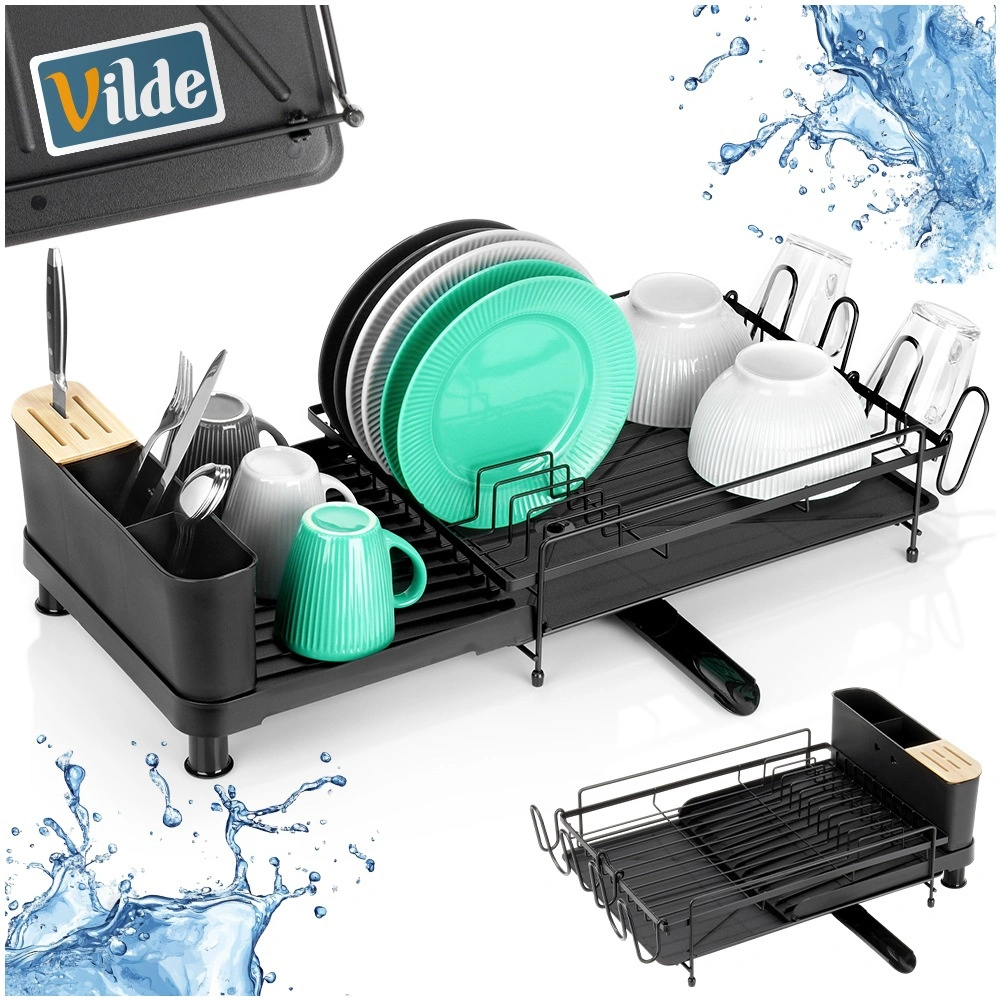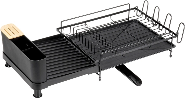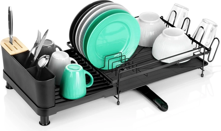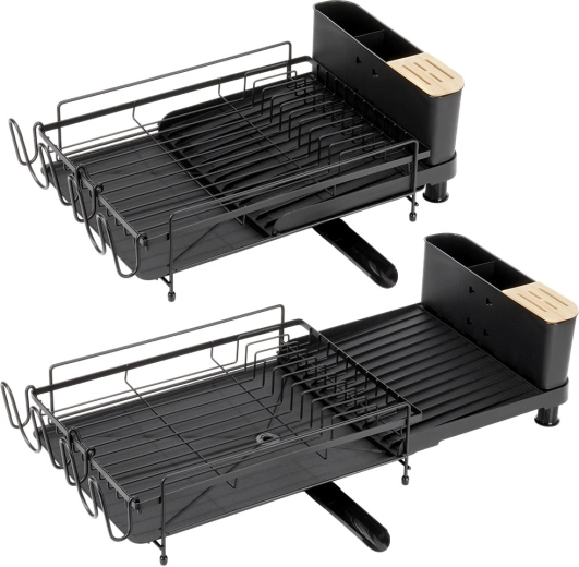 A kihúzható edényszárító ideális megoldás minden konyhába, ahol fontos a helytakarékosság és a rendezettség. Az állítható, 48–70 cm-es szélesség az aktuális igényekhez igazítható, a kisebb mosogatástól a nagyobb mennyiségig. A robusztus, elegáns fekete fém váz illik a modern és a klasszikus enteriőrökhöz is, míg a csúszásgátló lábak stabilitást biztosítanak a munkalapon.