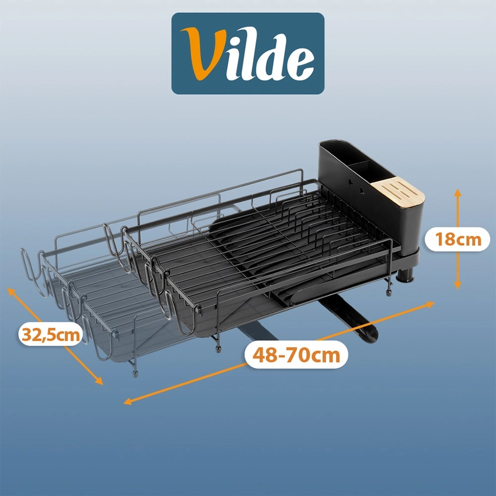 A szélesség könnyen állítható 48 és 70 cm között. Több mosogatnivaló? Húzza ki. Kevés edény? Tolja össze, és takarítson meg helyet.