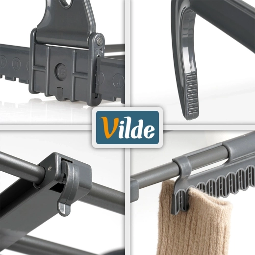 A összecsukható, magasságban állítható akasztóknak köszönhetően könnyedén felakasztható legfeljebb 13 cm széles radiátorra, valamint erkély- vagy teraszkorlátra is. A két mellékelt tartó megkönnyíti az apró ruhadarabok és zoknik szárítását. Összecsukva minimális helyet foglal, így utazáshoz is kiváló.