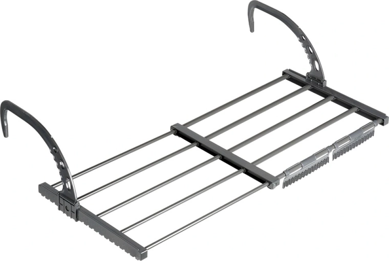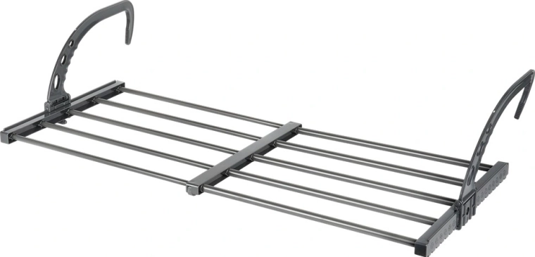 Magasságban állítható, összecsukható akasztói legfeljebb 13 cm széles radiátorokra illeszkednek, és erkély- vagy teraszkorlátra is felakaszthatók.
