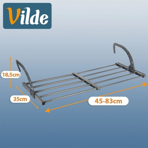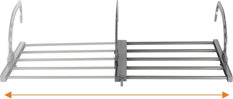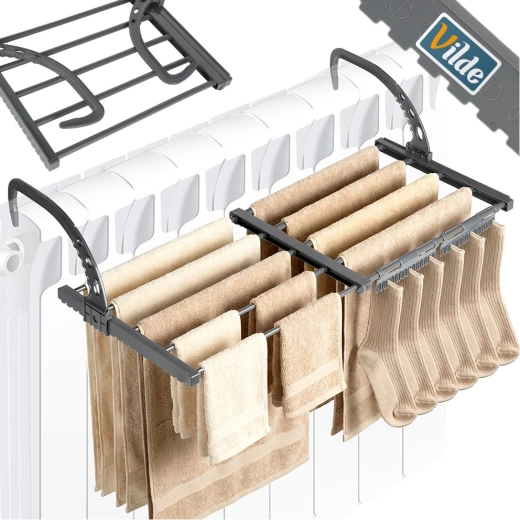 A praktikus, kinyitható radiátorszárító helyet takarít meg, és felgyorsítja a szárítást a fűtés melegének köszönhetően. Állítható, 45–83 cm széles, masszív fém szerkezetű, valamint összecsukható akasztókkal rendelkezik, így könnyen felszerelhető különféle radiátorokra vagy korlátokra. Ideális kis lakásokba, fürdőszobába és erkélyre.