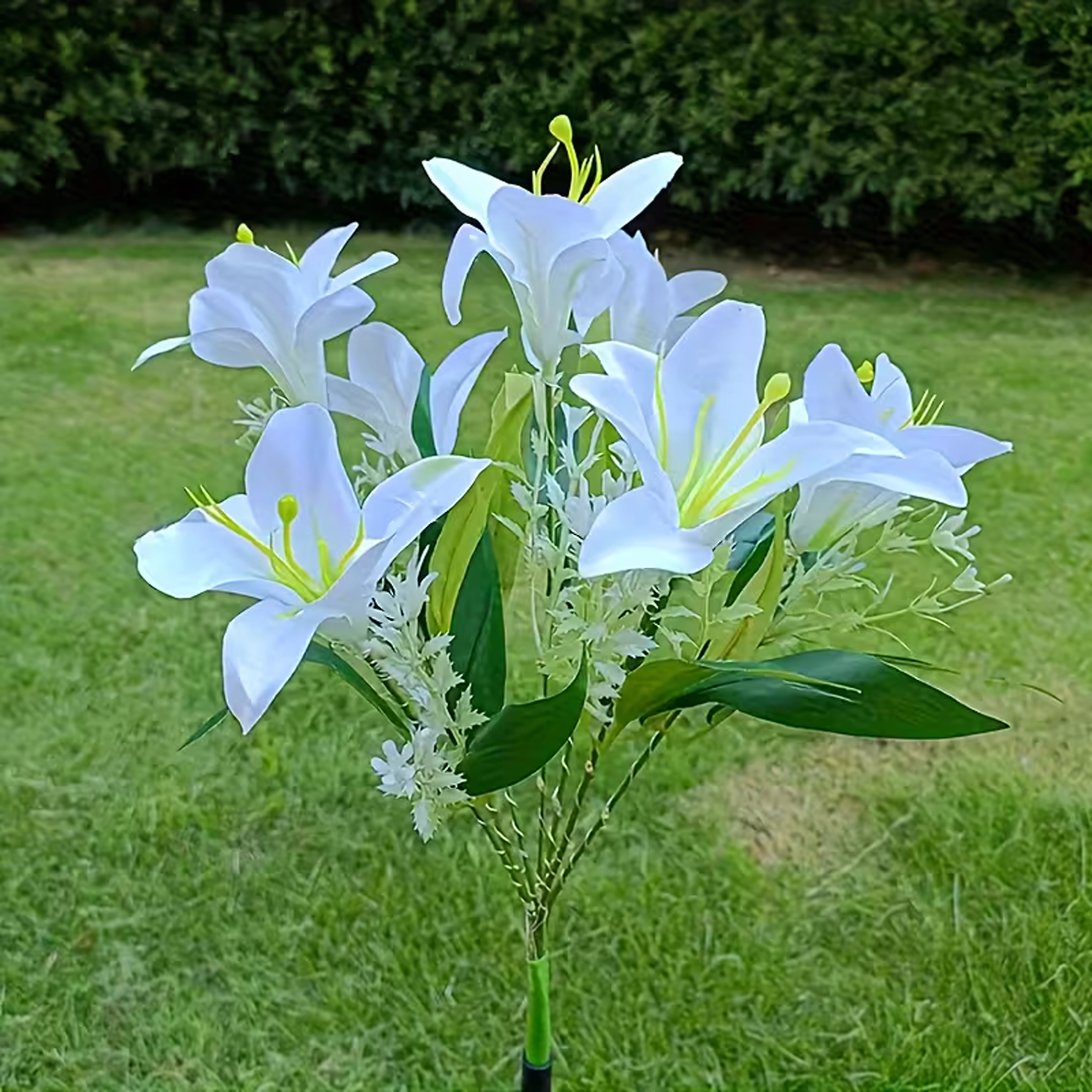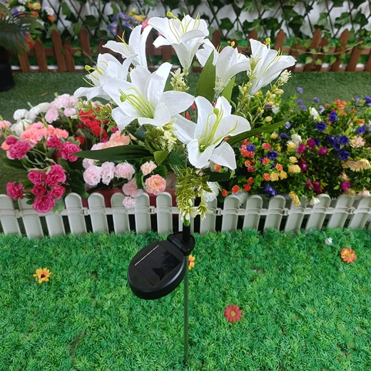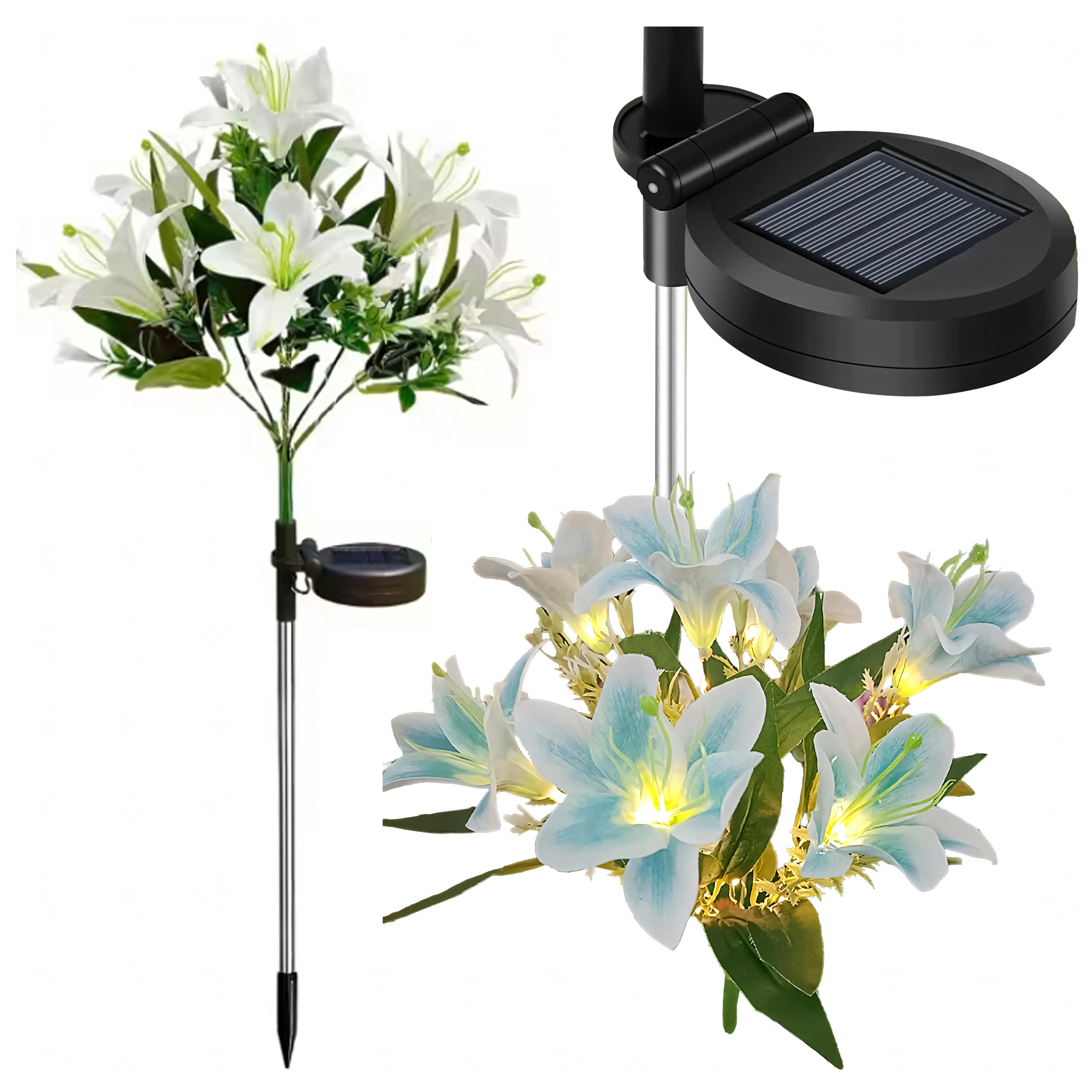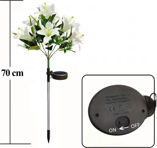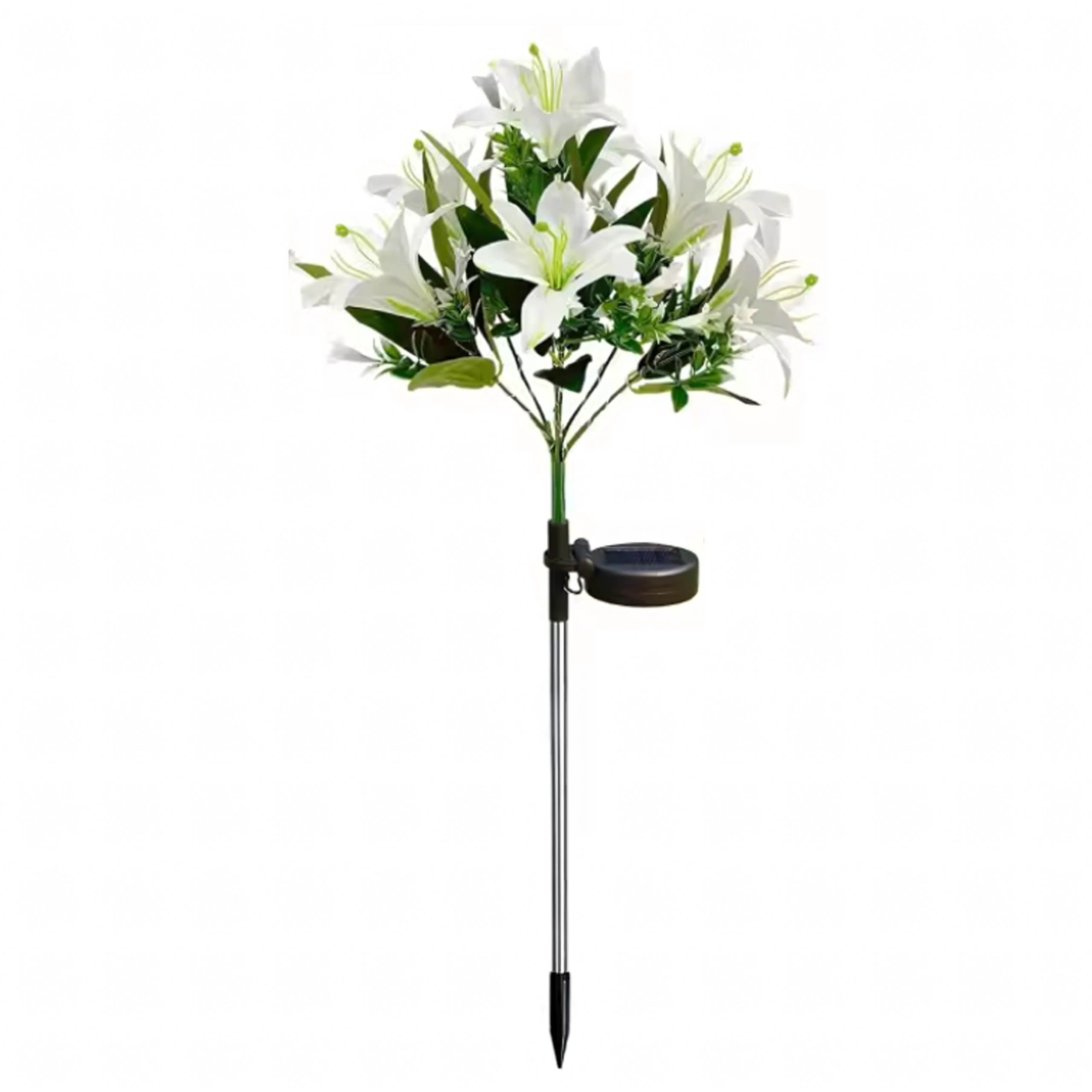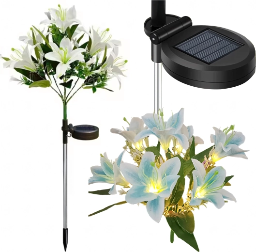 Varázslatos hangulatot teremthet a liliom formájú napelemes dekorlámpával. Az élethű virágokat és leveleket meleg LED fény egészíti ki, amely finoman átragyog a szirmokon, kiemelve az ágyásokat, ösvényeket és virágcserepeket. Elég a földbe szúrni, a panelt a nap felé fordítani, a többit az integrált napelem intézi.