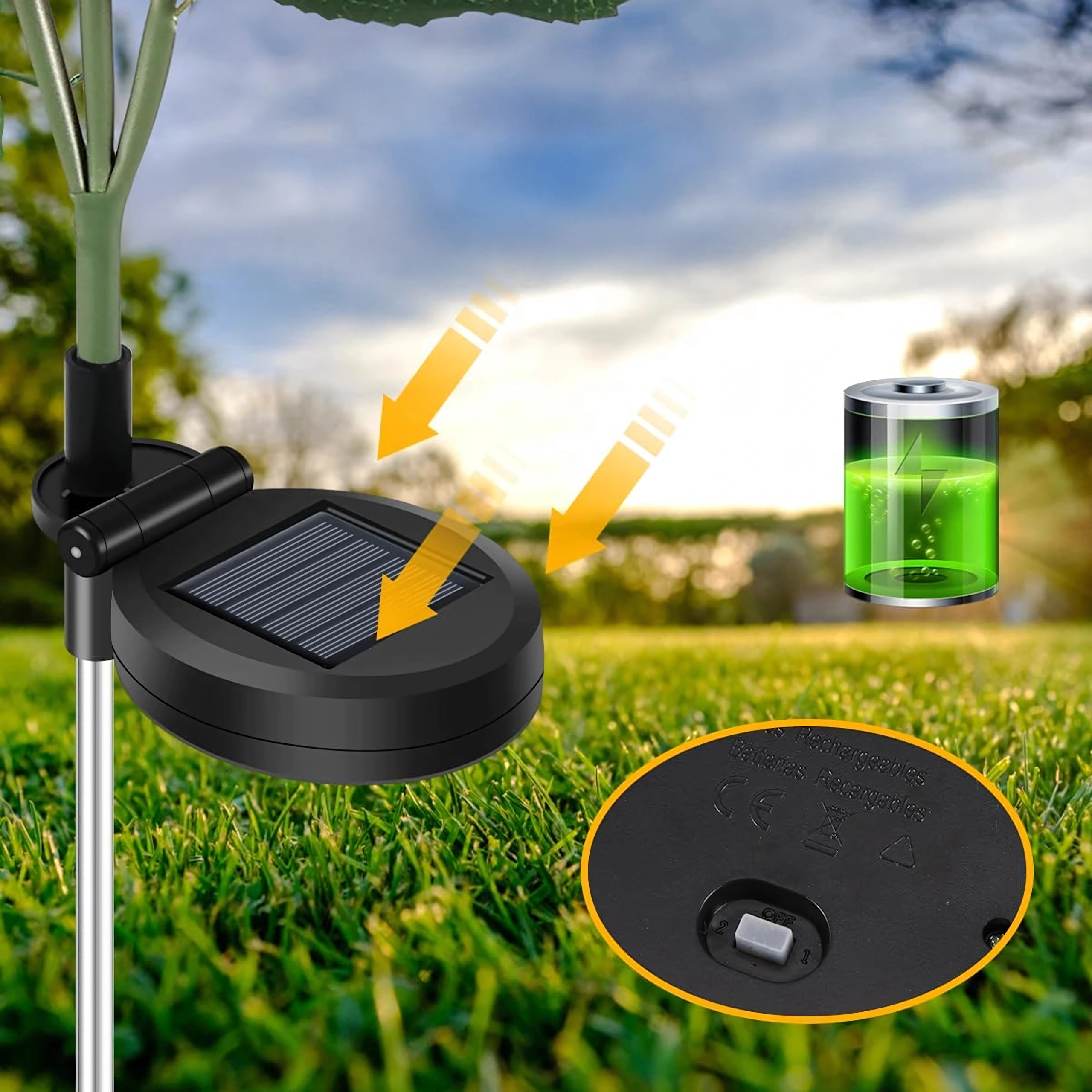 Gondosan kidolgozott virágok és levelek látványos hatást keltenek. A meleg LED diódák finoman átszűrődnek a sziromleveleken, barátságos hangulatot adva a kertnek.