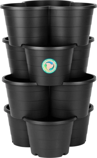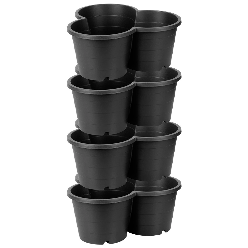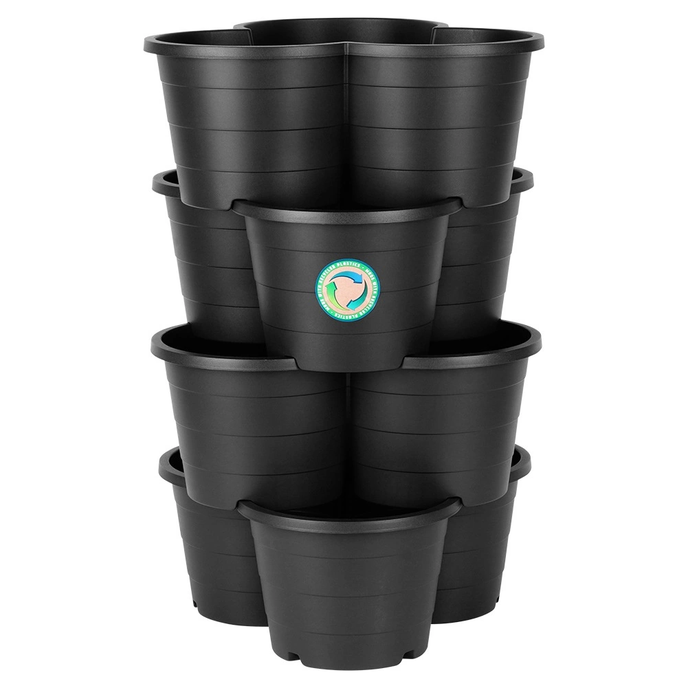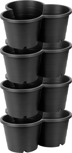 Speciális reteszek és forma biztosítják, hogy a virágtartók biztonságosan egymásra helyezhetők legyenek, így több szintes ágyást hozhat létre korlátozott térben is.