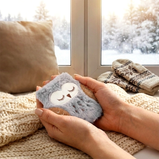 Aranyos, bagoly alakú melegítő párna kivehető gélbetéttel, amely gyors és kellemes meleget biztosít a hideg napokon. Kompakt, 12 × 11 cm-es méretének köszönhetően elfér a zsebben, a kesztyűben és a cipőben is. Többször használható, forró vízben könnyen regenerálható, a huzat pedig 30 °C-on mosható. Ideális síelőknek, túrázóknak és mindennapi használatra.