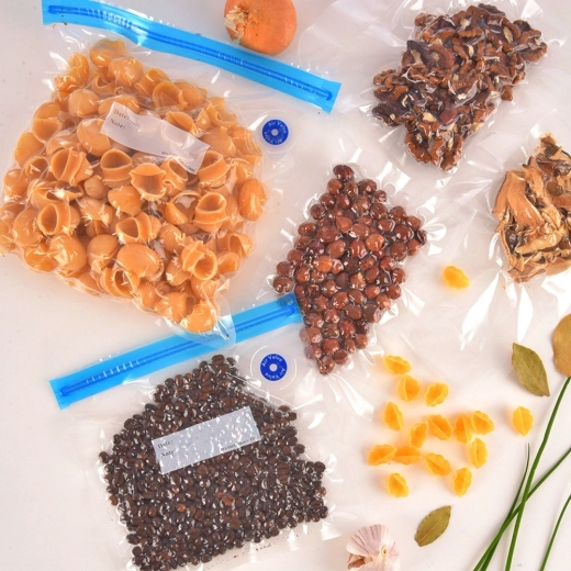A levegőkiszívó szelep és a cipzáras zárás minimálisra csökkenti az oxigén és a nedvesség bejutását. Az élelmiszerek tovább maradnak ízletesek és szagmentesek.