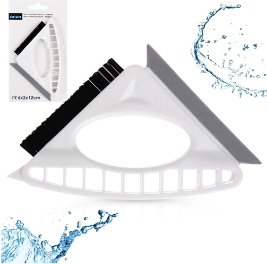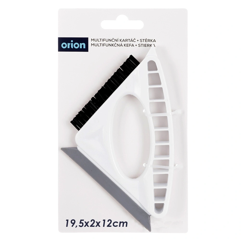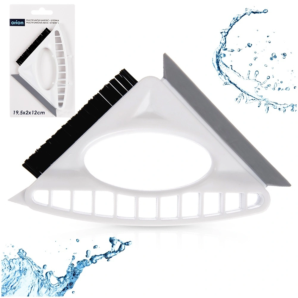 Praktikus tisztítóeszköz, amely egyesíti a kefét, lehúzót és kaparót egyben. Az ergonomikus fogásnak és a masszív, kemény sörtéknek köszönhetően könnyedén megtisztítja a fugákat, sarkokat és a nehezen hozzáférhető helyeket. Az integrált rugalmas lehúzó gyorsan eltávolítja a vizet az üvegről, csempéről vagy rozsdamentes felületekről, a kaparó pedig megbirkózik a rászáradt szennyeződéssel. Ideális a konyhába és fürdőszobába.