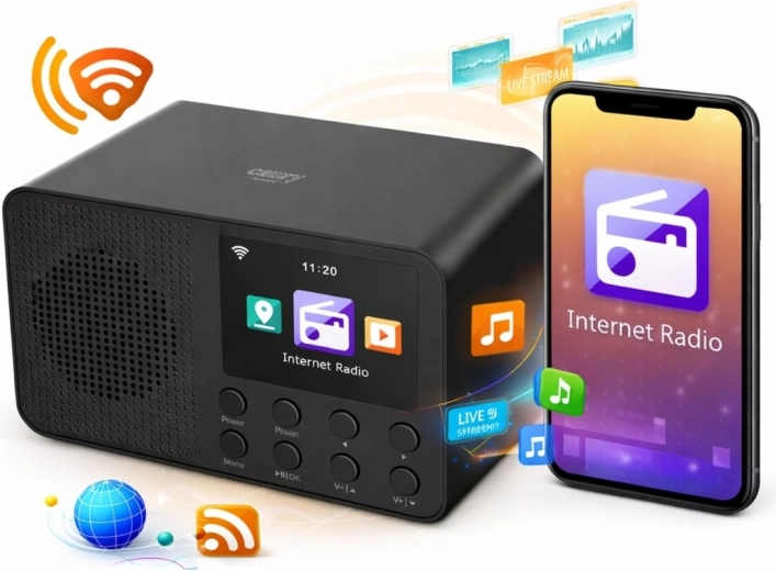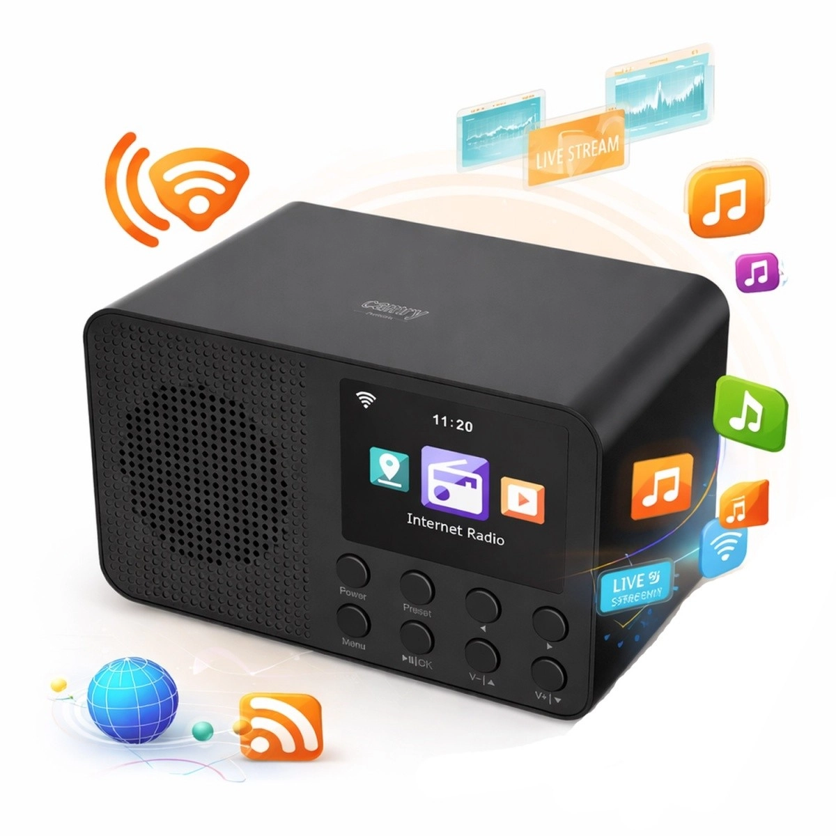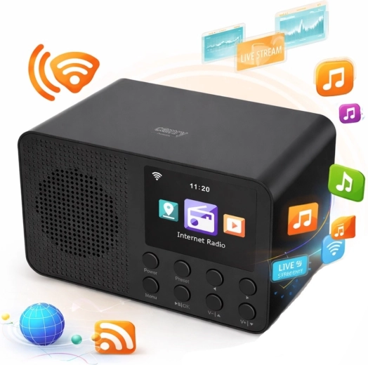 A CAMRY internetrádió a klasszikus vezérlést ötvözi az online világgal. A Wi‑Fi-nek köszönhetően könnyedén felfedezhetsz több ezer állomást, podcastot és műfajt a világ minden tájáról, míg a Bluetooth lehetővé teszi a zenelejátszást közvetlenül telefonról vagy tabletről. A 2,4"-es színes TFT kijelző jól láthatóan mutatja az állomás nevét, az időt és a dátumot minden körülmény között.