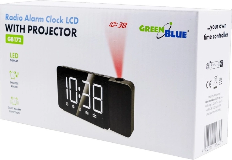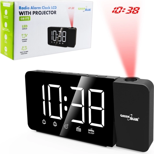 A modern GreenBlue GB172 rádiós ébresztőóra ideális választás hálószobába és dolgozószobába egyaránt. Áttekinthető LED kijelzőt kínál nagy, fehér számjegyekkel, amelyek nagyobb távolságból is kiválóan láthatók. A három fényerőszintnek és a háttérvilágítás teljes kikapcsolási lehetőségének köszönhetően tökéletesen alkalmazkodik a sötét környezethez, és nem zavarja az alvást.