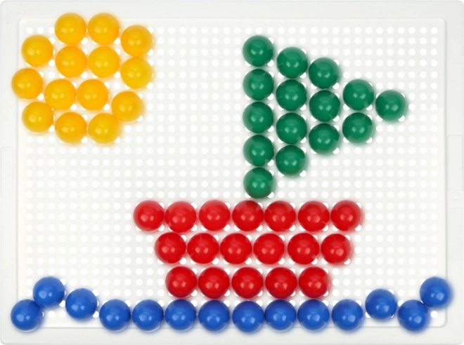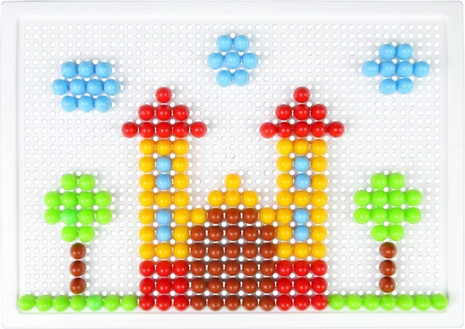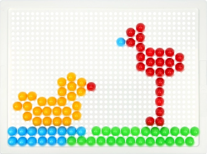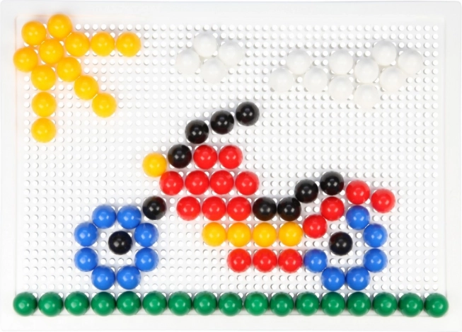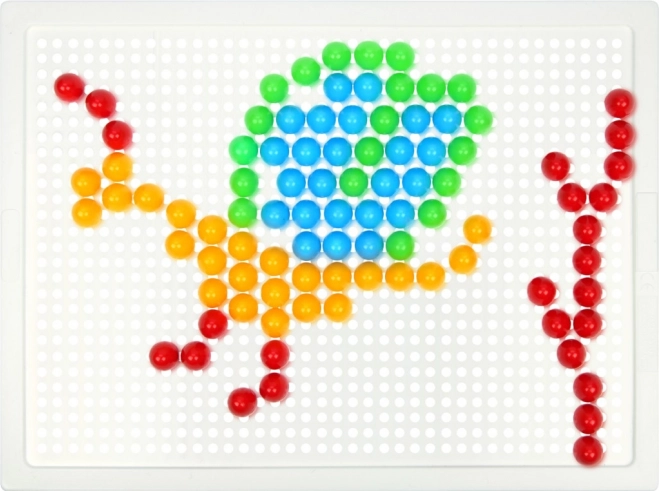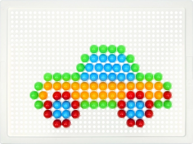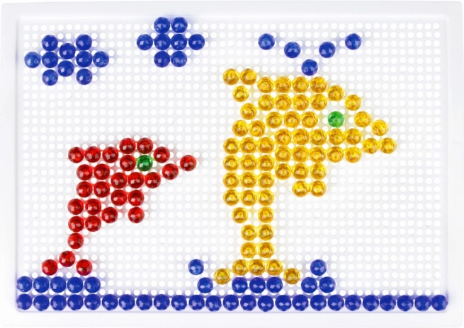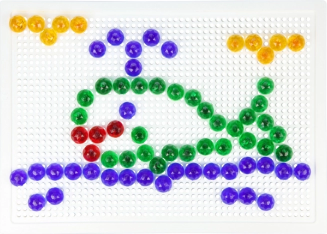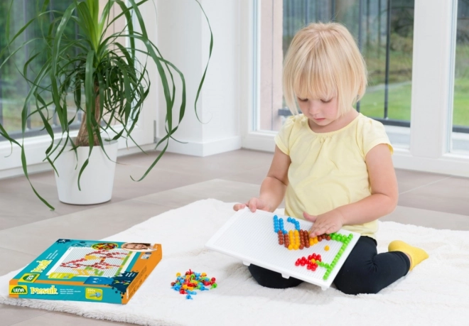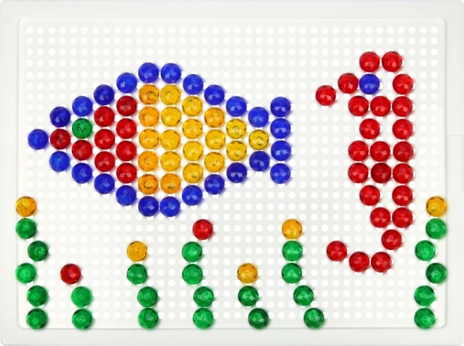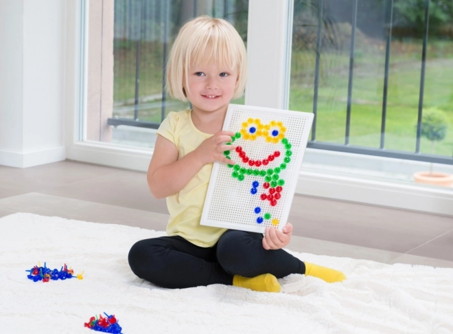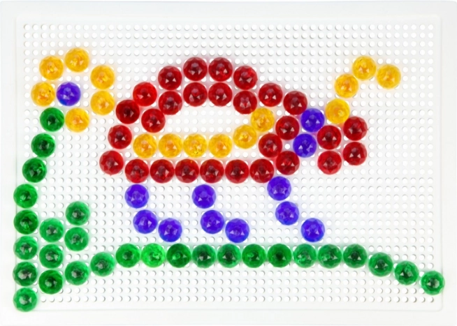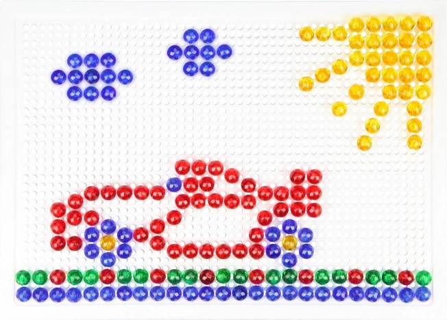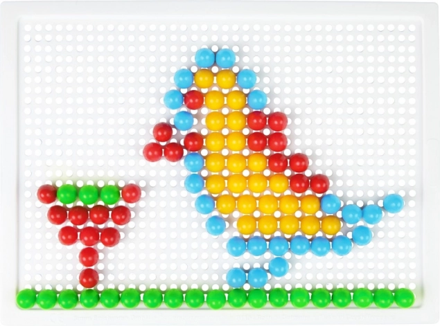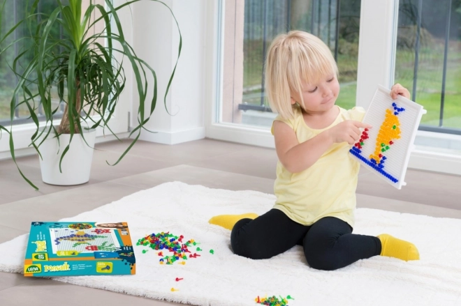 A LENA mozaik 100 színes gombbal ideális választás kreatív játékhoz otthon és óvodában. Az egyszerű, perforált táblába illeszthető pöcköknek köszönhetően a gyerekek fejlesztik a koordinációs készségeket és a türelmet, miközben saját motívumokat alkotnak – állatokat, járműveket vagy fantáziaképeket.