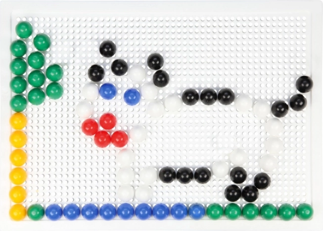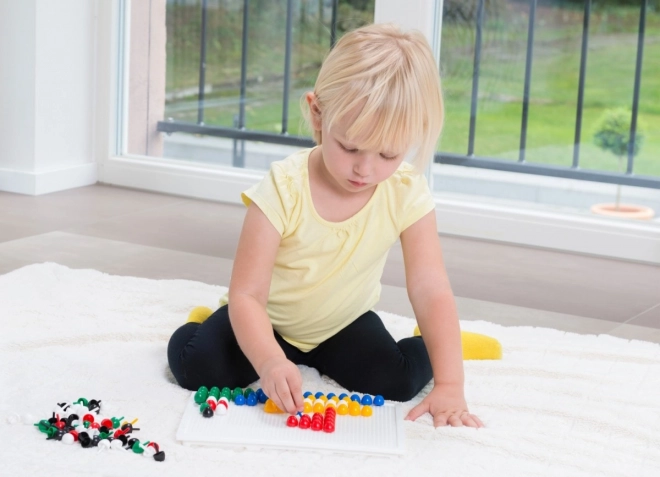 A 10 mm átmérőjű, élénk színű pöckök stabilan illeszkednek a 21 × 16 cm-es erős műanyag alaplapba a kényelmes alkotáshoz.