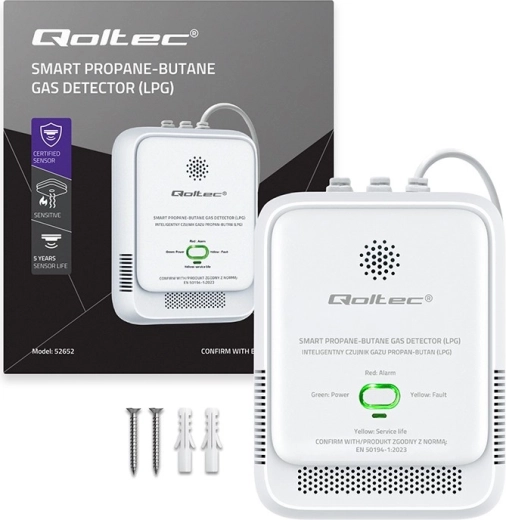 Megbízható LPG detektor védi otthonát a propán-bután szivárgásától. Gyors észlelés, hangos 85 dB-es riasztás és LED fényjelzés figyelmeztet időben a veszélyre. Félvezető szenzor magas pontossággal, folyamatos 24/7 felügyelet, önellenőrzés és TEST gomb az egyszerű működésellenőrzéshez. A EN50194-1:2023 tanúsítvány igazolja a minőséget és a biztonságot.