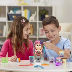 Ezzel a Play-Doh fodrászkészlettel pillanatok alatt készülnek a legőrültebb frizurák. Ültesd a figurát a székbe, nyomd le, és a fejéből színes sörény nő ki, amelyet tovább vághatsz, fésülhetsz és díszíthetsz. A többszínű gyurma és a vidám kiegészítők minden hajvágásból új, fantáziadús történetet varázsolnak.