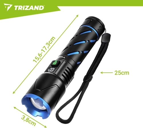 Ez a kompakt TRIZAND taktikai LED zseblámpa a nagy teljesítményt hosszú üzemidővel és tartós kivitelezéssel ötvözi. A 800 lumen és az akár 200 méteres hatótáv biztosítja a magabiztos mozgást sötétedés után, míg a zoom lehetővé teszi a váltást a széles fénykúp és a szűk, fókuszált fénysugár között.