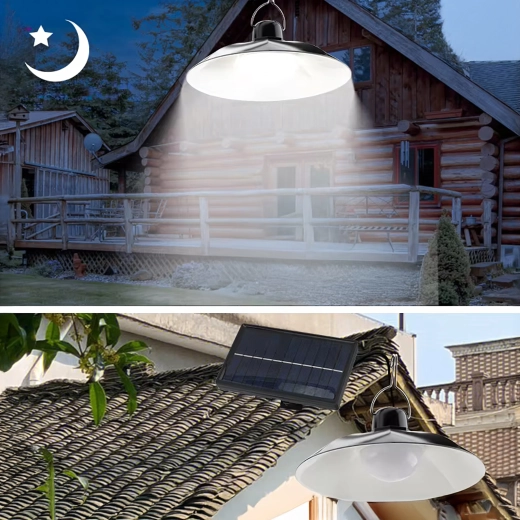 Varázsoljon kellemes hangulatot a kültérre kábelek húzogatása nélkül. A függesztett napelemes LED lámpa erős és egyenletes megvilágítást ad a széles fém búra alatt, ideális pergolákhoz, teraszokhoz, pavilonokhoz, tetők alá vagy bejáratokhoz. A különálló napelem panel nappal tölti a beépített akkumulátort, estére pedig az alkonykapcsolónak köszönhetően a fény automatikusan felkapcsol.