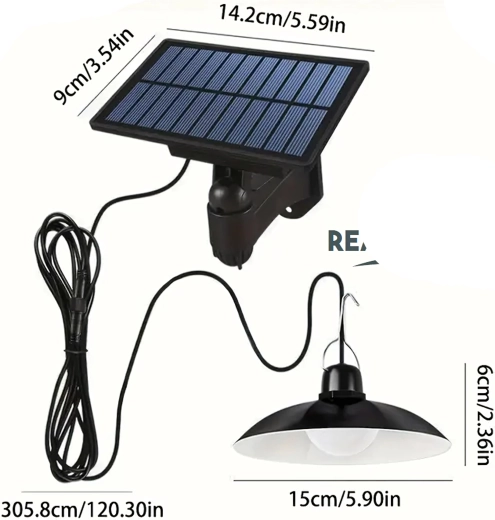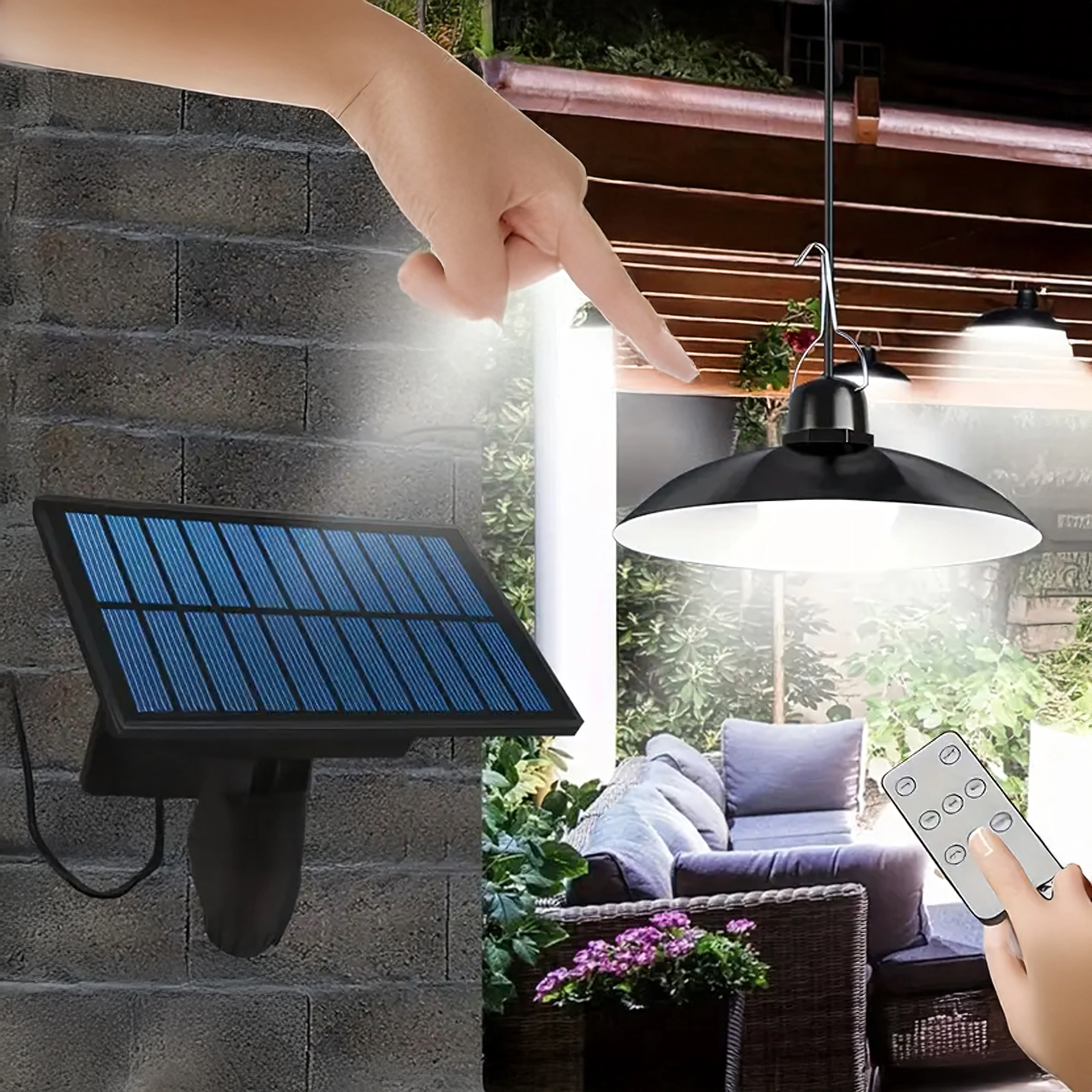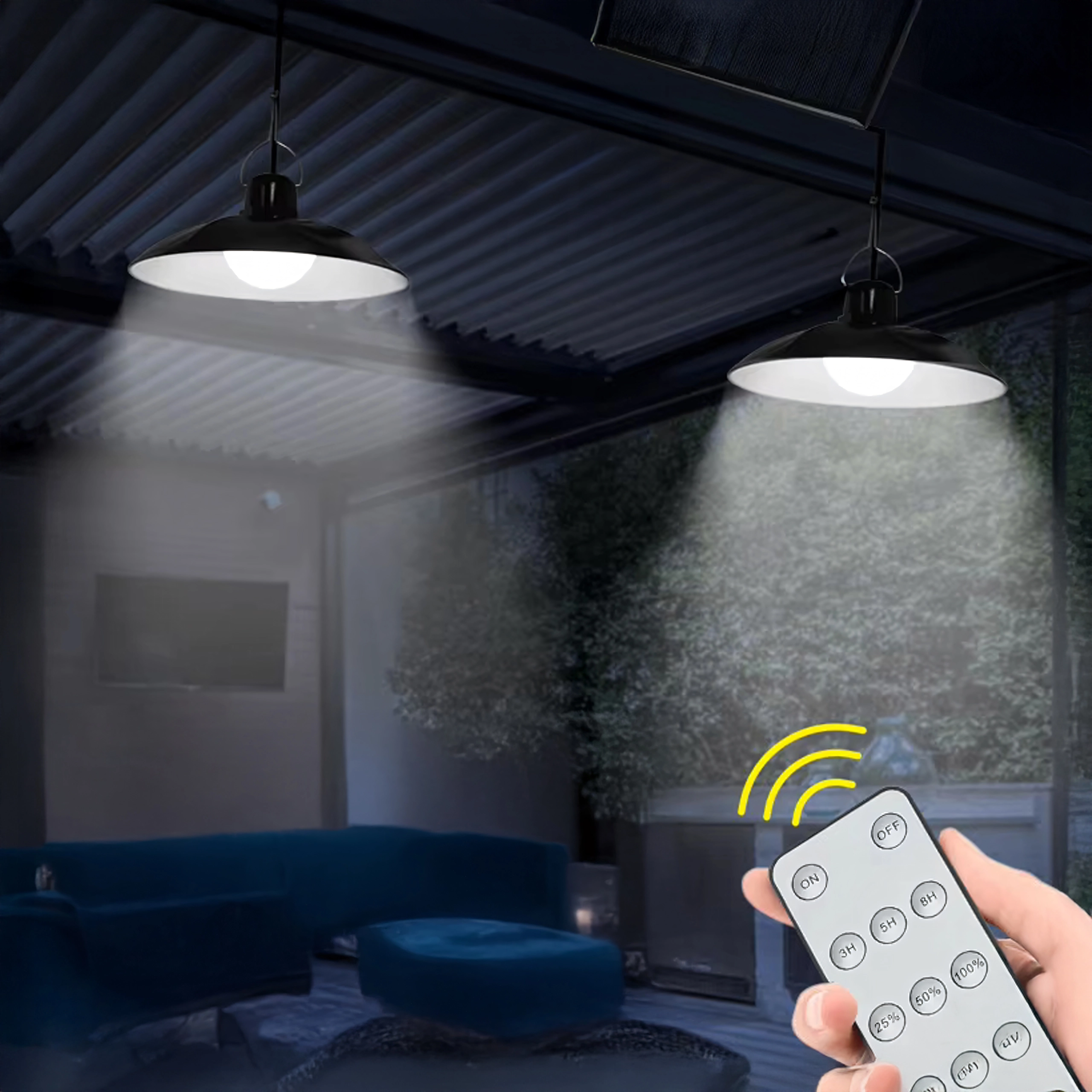 Napelemes függesztett LED lámpa távirányítóval és alkonykapcsolóval