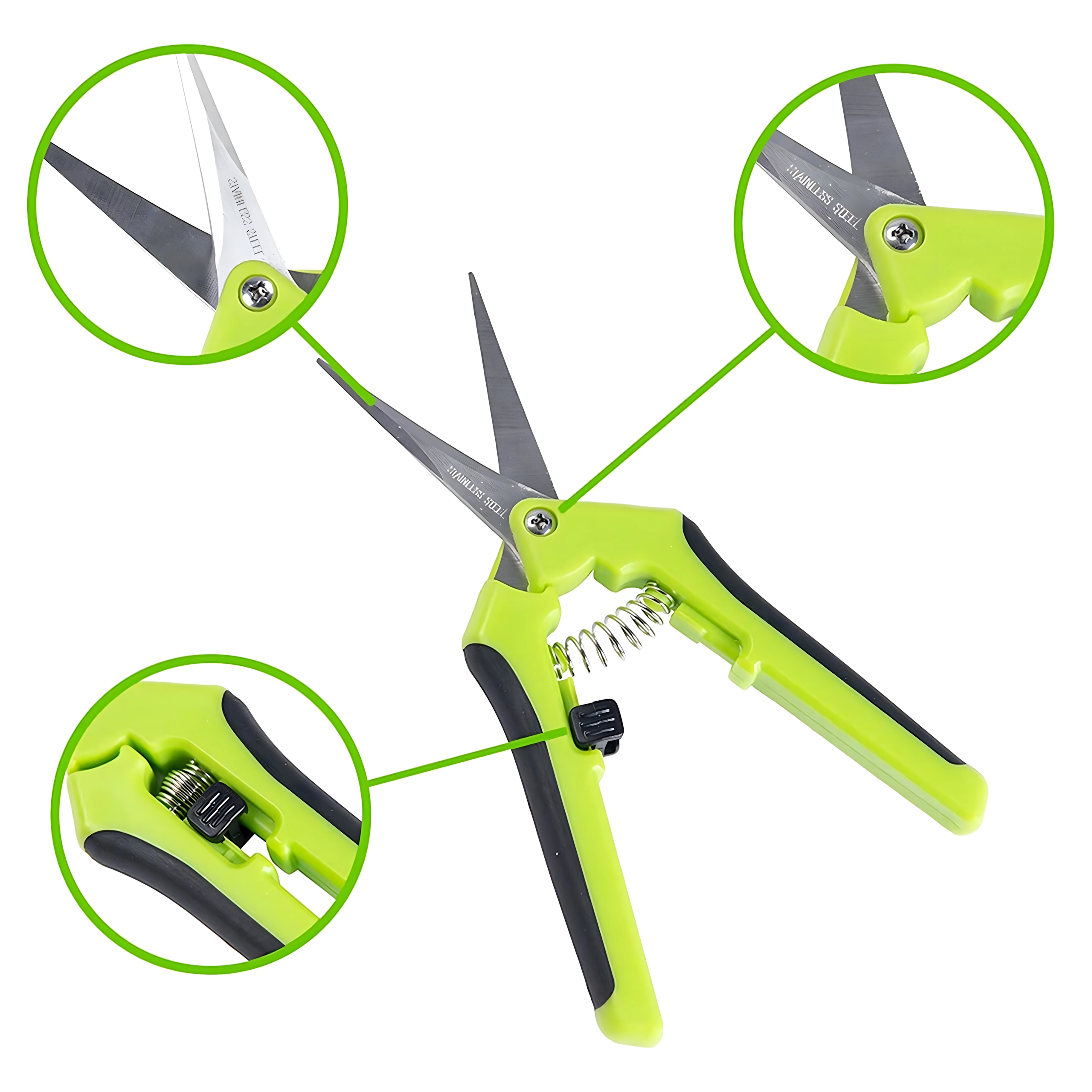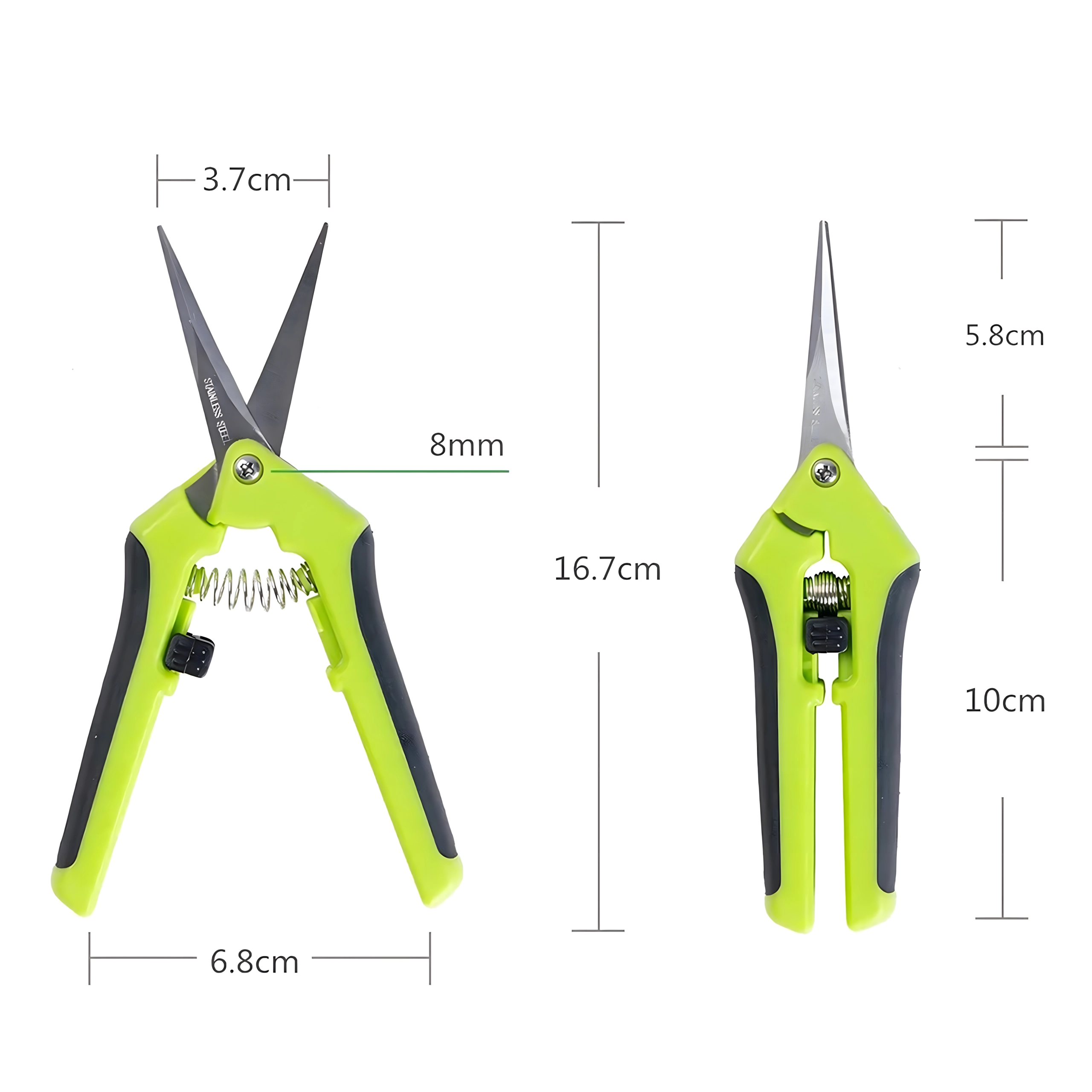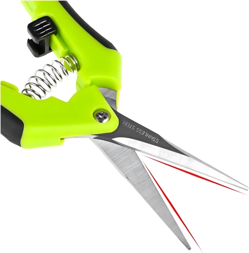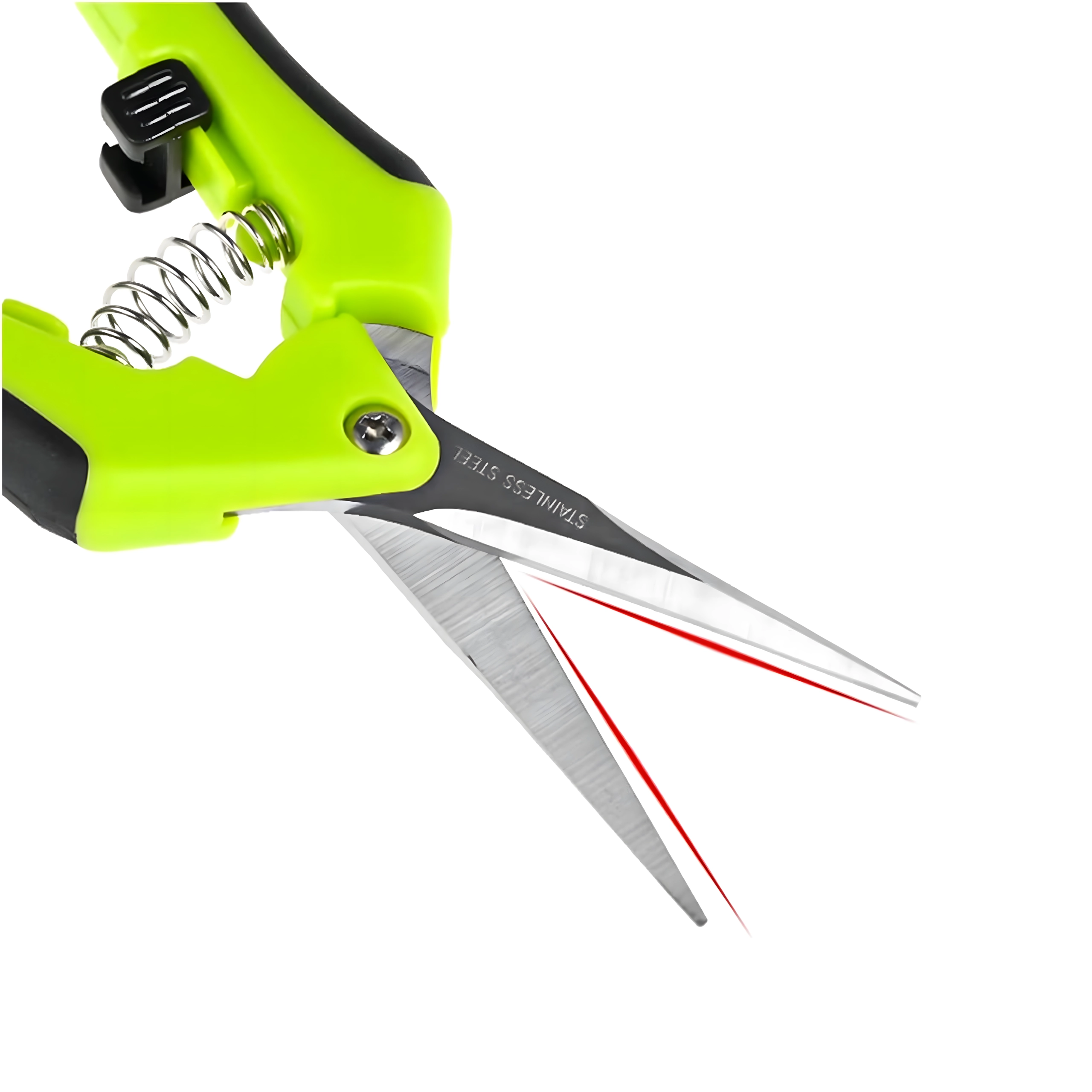 Hosszú, keskeny és hegyes rozsdamentes acélpengék biztosítják a tiszta vágást a szárak összenyomása nélkül – ideális a részletes formázáshoz és csípéshez.
