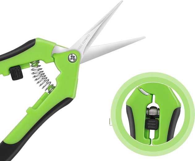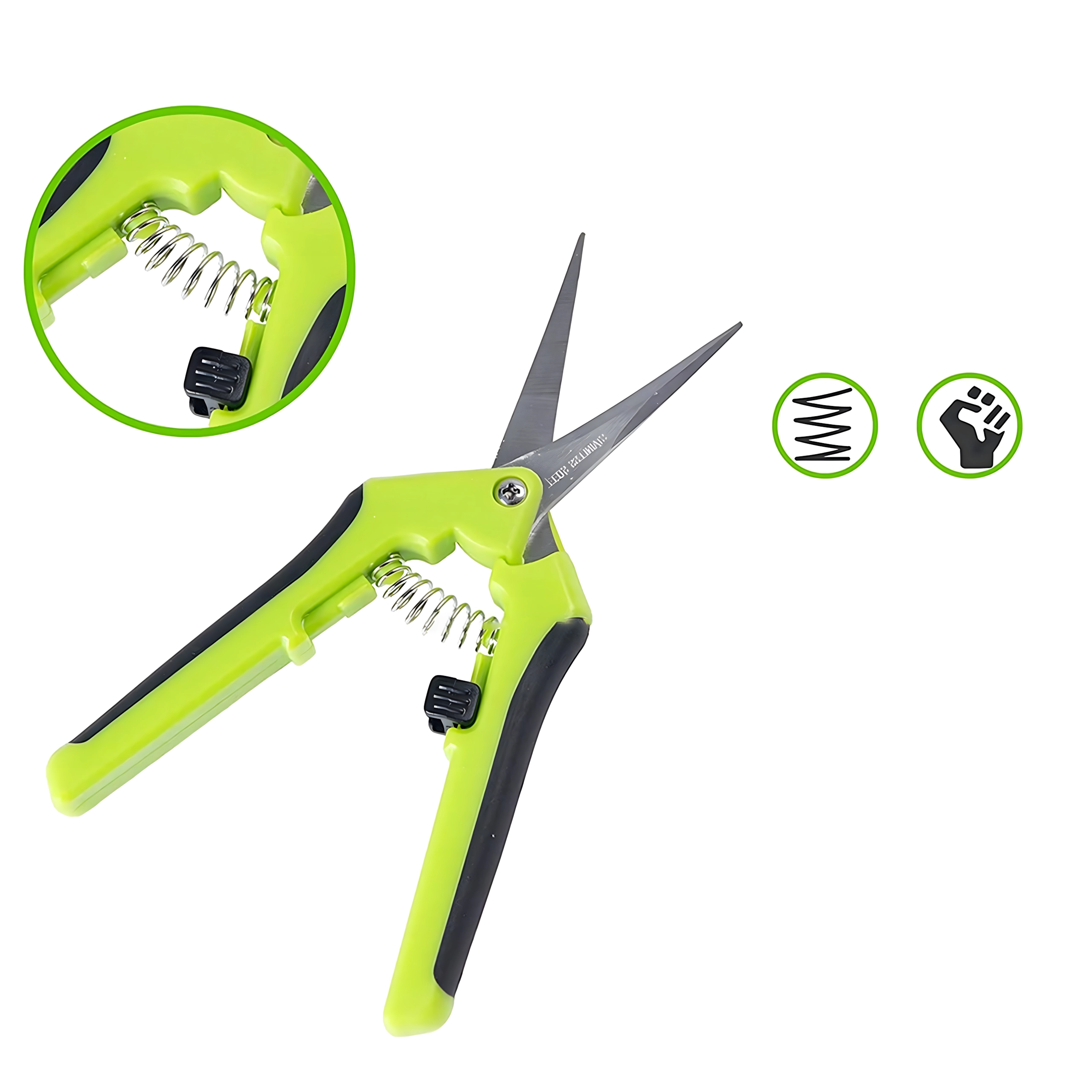 Az erős spirálrugó minden vágás után automatikusan kinyitja a pengéket, így gyors, ismételt és kényelmes egykezes vágást tesz lehetővé.
