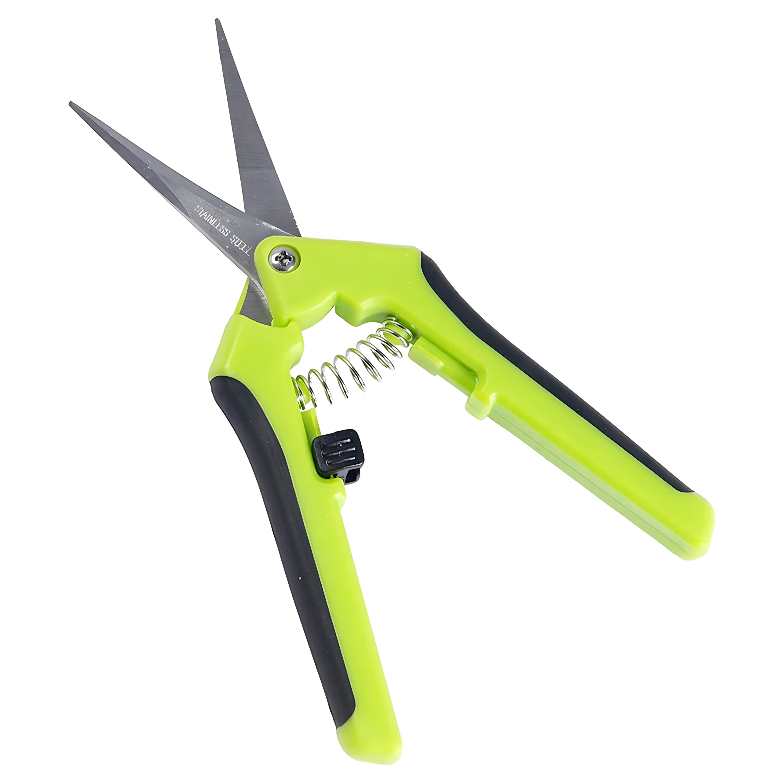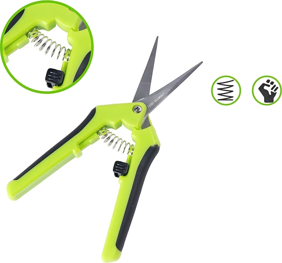 Ezek a könnyű és precíz kerti ollók ideálisak szobanövények, fűszernövények, virágok és fiatal hajtások finom formázásához a kertben. A hosszú, hegyes rozsdamentes acélpengék szálkamentes, tiszta vágást biztosítanak, míg a rugós mechanizmus minden vágás után visszanyitja a pengéket – a gyors, kényelmes, egykezes munkáért.