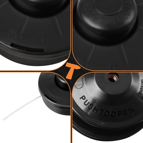 A minőségi PP és nejlon szerkezet ellenáll az ütéseknek és a terhelésnek a sűrűbb fűben végzett munka során is. A fej 1,5–3 mm átmérőjű damilokat támogat, így könnyen kiválaszthatja az ideális vastagságot a terephez és a növényzet típusához. A masszív fedélreteszek megakadályozzák a nem kívánt kinyílást vágás közben, növelve a biztonságot és a megbízhatóságot.