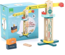 A Vilac Vilacity fa kikötői daru ideális kiegészítő minden kis építő és vasútjátékkedvelő számára. A mágneses rendszernek köszönhetően a gyerekek könnyedén megfoghatják és áthelyezhetik a rakományt, miközben a masszív felépítés zökkenőmentes forgást és többirányú mozgást tesz lehetővé.
